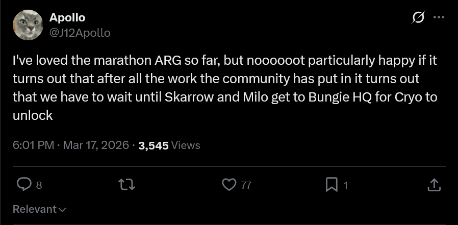 Aztecross liked destiny, concord, highguard, and now marathon.
