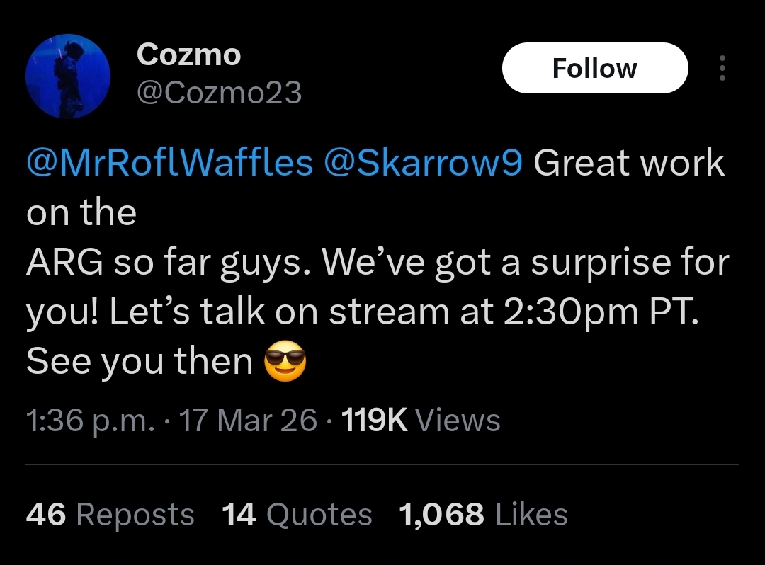 >>560596408They are also coming to the conclusion that simply playing the game and getting ready for the map is better than solving the ARG. They know deep down that this doesn't matter since the map will be released anyway. Now Skarrow is starting to get angry about it all lmao. Content sloppers RAPED once again.