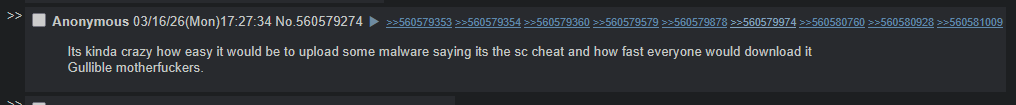 >>560602313i've seen chinks have 1 million SC cheated already so i doubt they'll care about me or someone in the 50-100k's