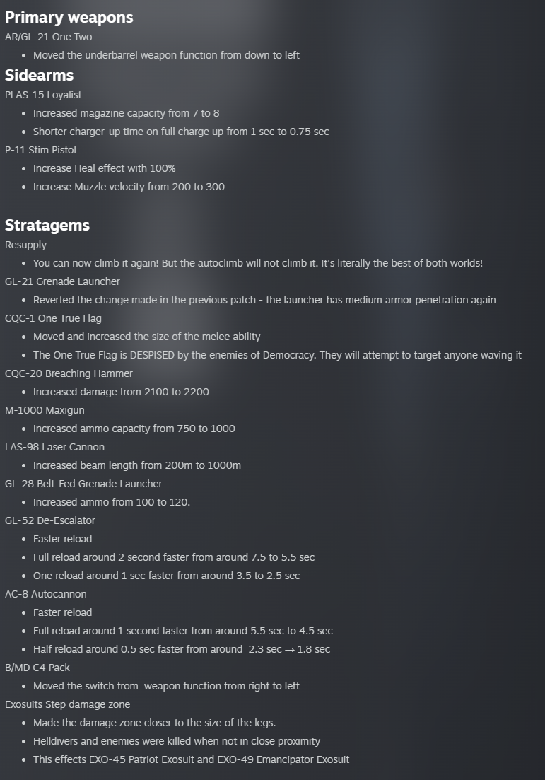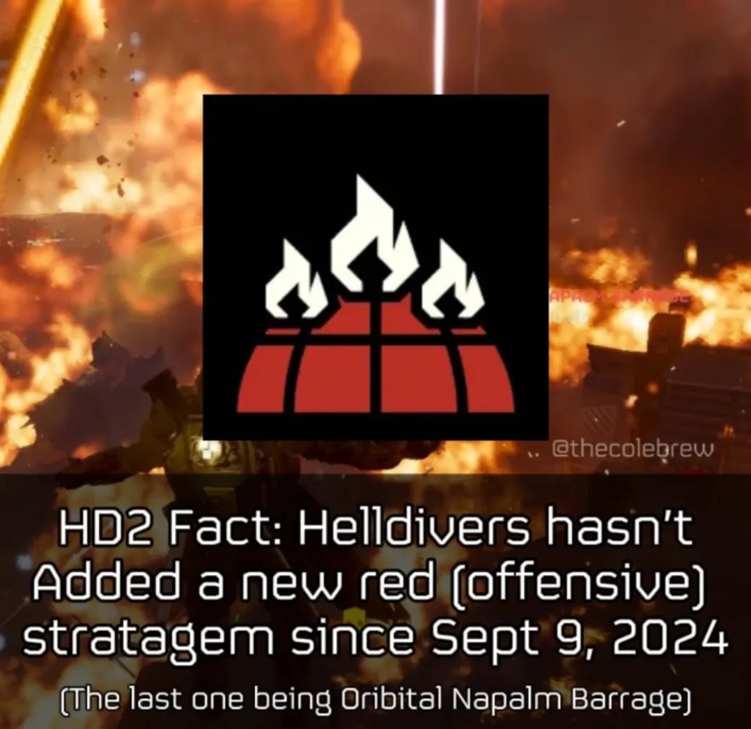 >Fixed a glitch that would let a player take multiples of the same stratagemafter the vox shit i know this game can handle stratagem dupingjust make it a feature FFS and lock ones that would chunk performance like barrages