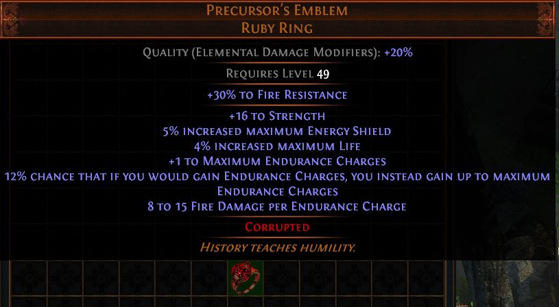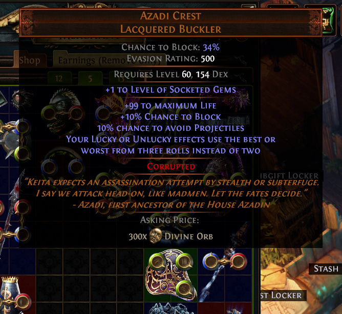 >>560730754Along with The Elderslayers.>>560730979The perfect block chance doesn't matter btw. Glad's ascendancy makes it so your shield gives 50% block no matter what. I would rather have 6% movement speed over that corruption, too.