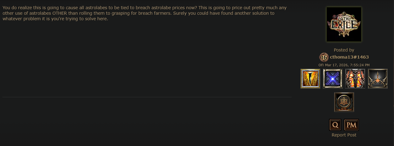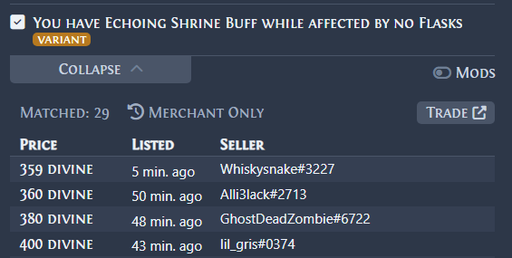 >turns out quant doesn't affect fragments dropped from bosses on nightmare maps>the one group that was still running those (bossrushers) has no reason to use chaos orbs eitherWill we see poe2 situations where divines end up trading for 4k by the end of the league?