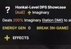 >Eva's showcases are using 2 bad supports that provide almost no amp and only help by giving her more certified banger>certified banger itself is trash both because it's only used on shit multipliers and because it just seems like a genuinely weak amp with even 1000+ showing no noticeable improvement, only serving to charge her ult which she can use energy/AA supports for>showcases use a set that focuses on her shit elation dmgI'll reverse judgment on her until a competent showcase comes out