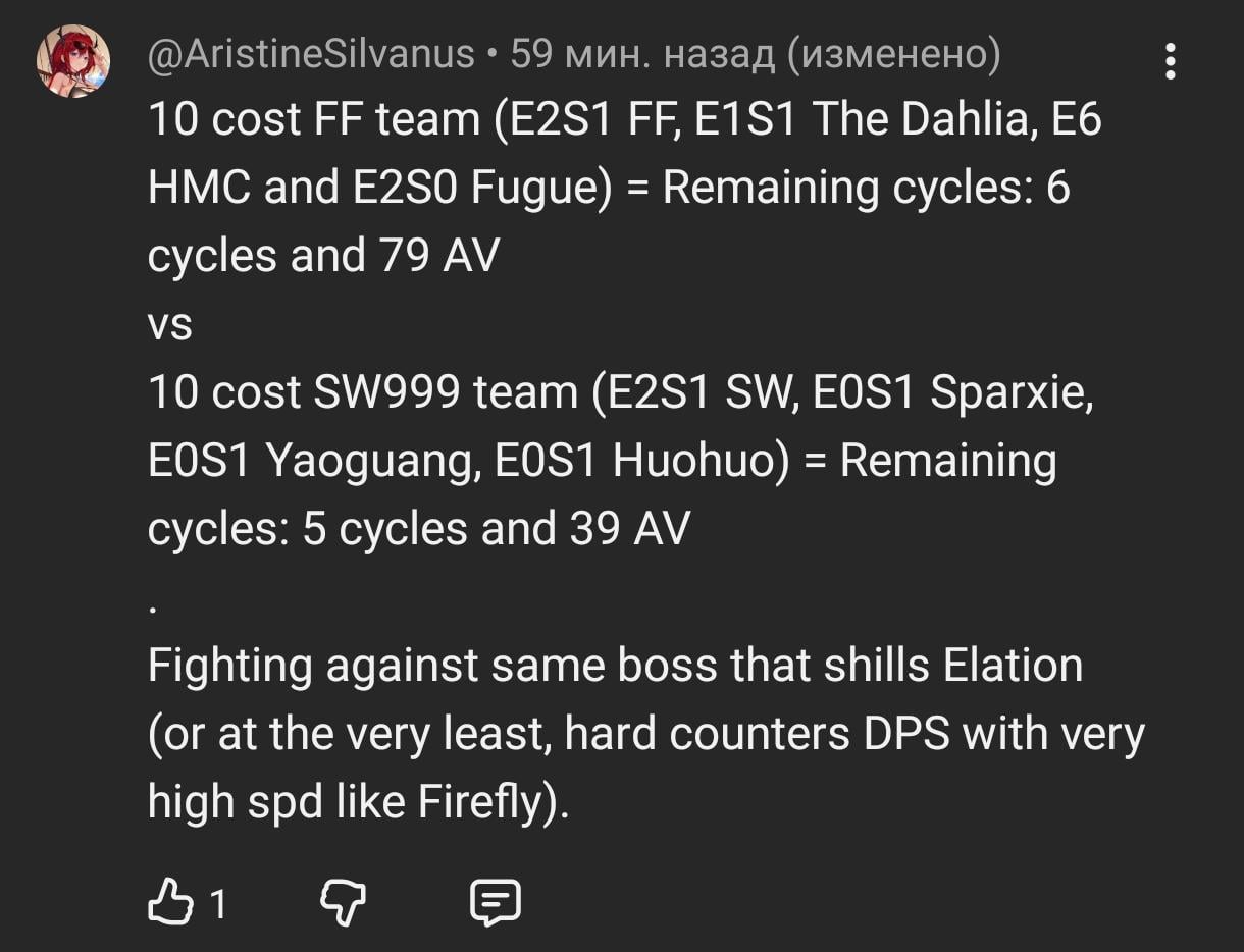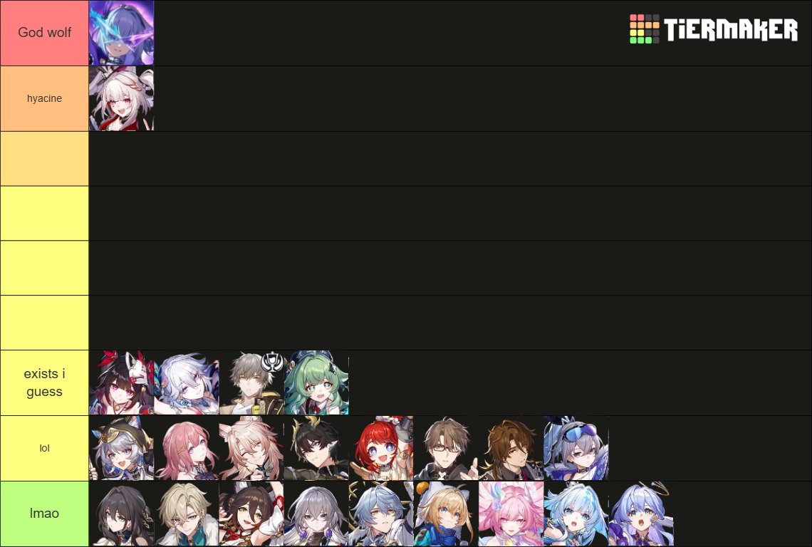 You know what's really fucked up?Yaoguang's issues with SW aren't inheritly because of SW failing to work with SW, they do!It's because she doesn't do enough by herself!>Has to rely on Sparxie to do damage>"E1 Yao fixes everything!" When as if 20 extra punchline is enough to fix everything without just whaling for E2 Sparxie>Her minimal shred just isn't enough when she herself provides very little outside of getting SW into God Mode.You would HAVE to bend over backwards and rework Silver Wolf to ACCOMODATE Yaoguang in V3 to justify her. That is how DREADFUL this is.