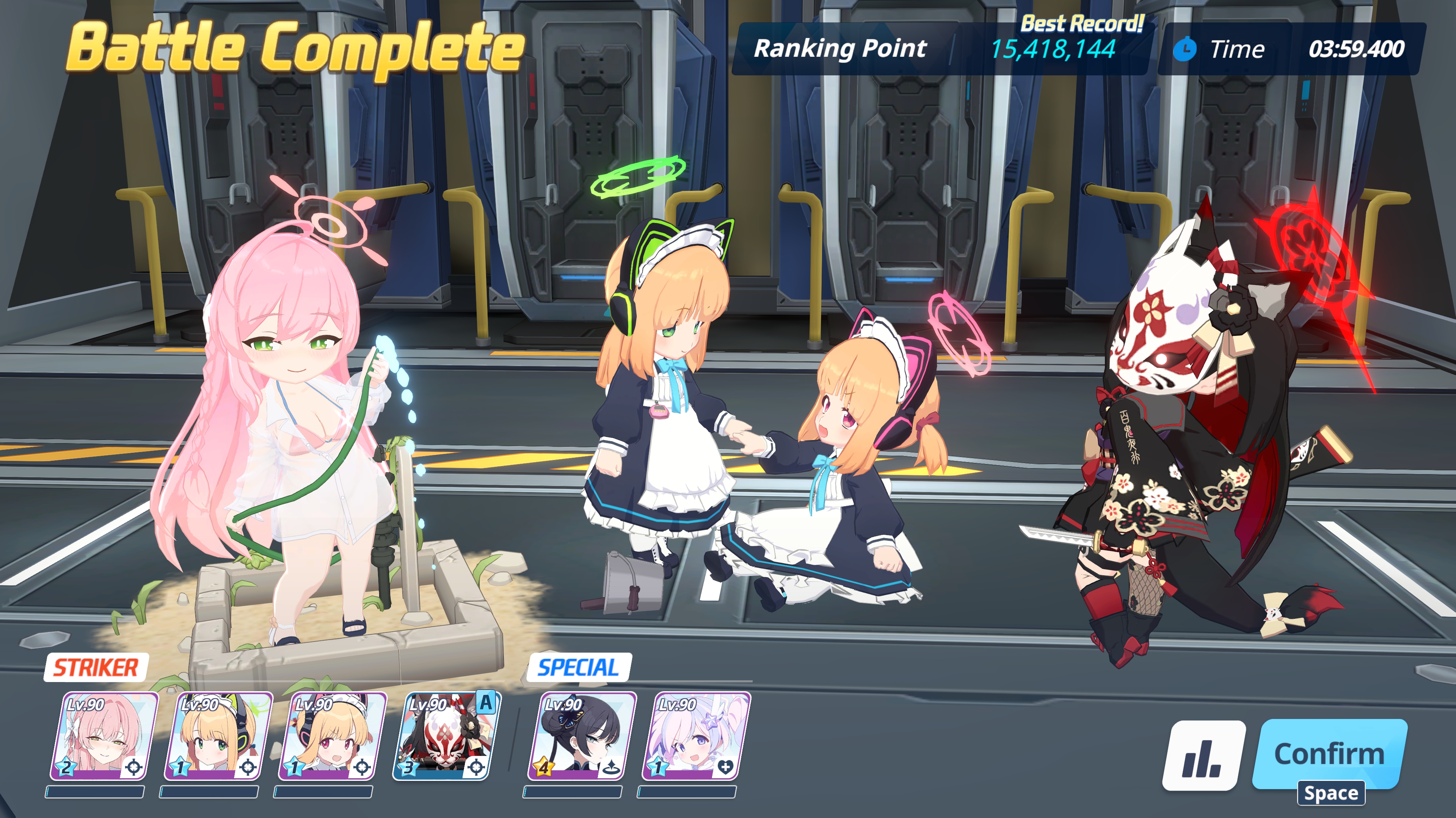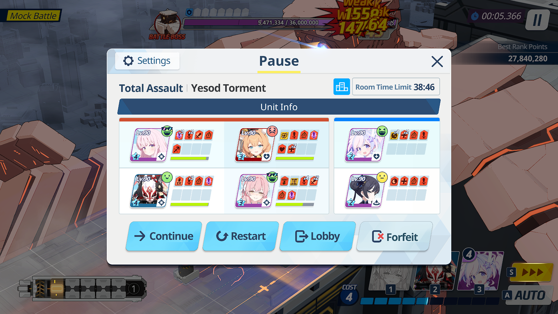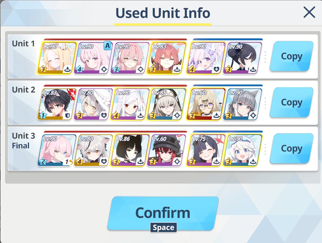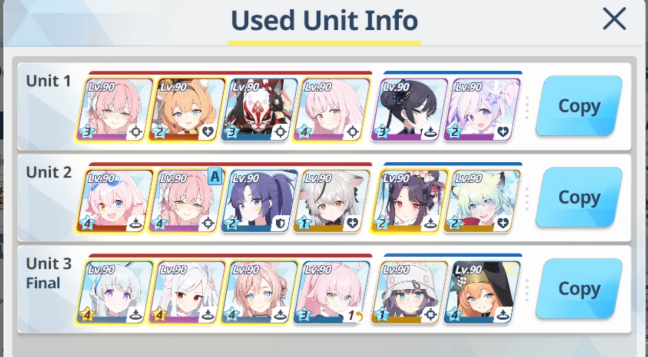 P2 was also kinda meh, I think I've got like a minute left at the end but my team (especially mSuzumi) was low on HP after one slam so I had to bring Koharu. Not sure what to do now