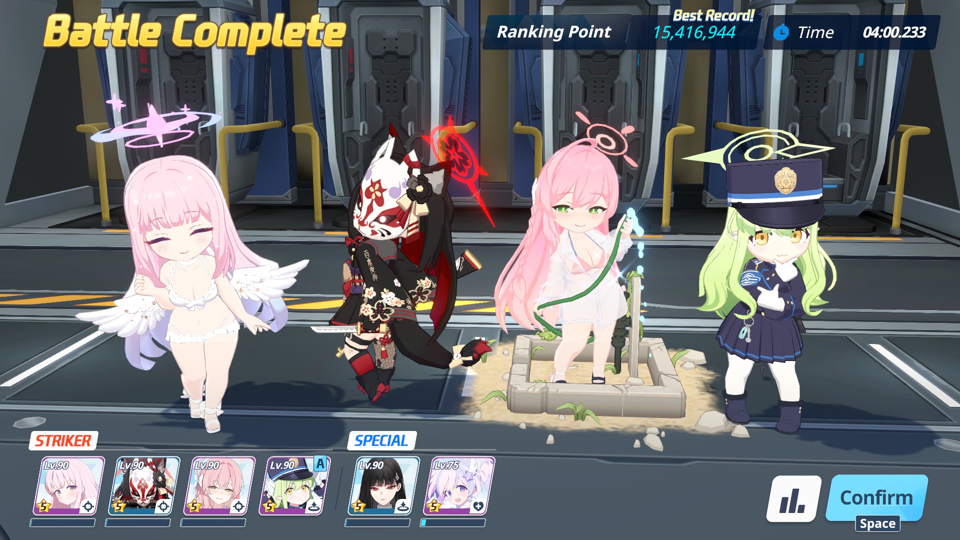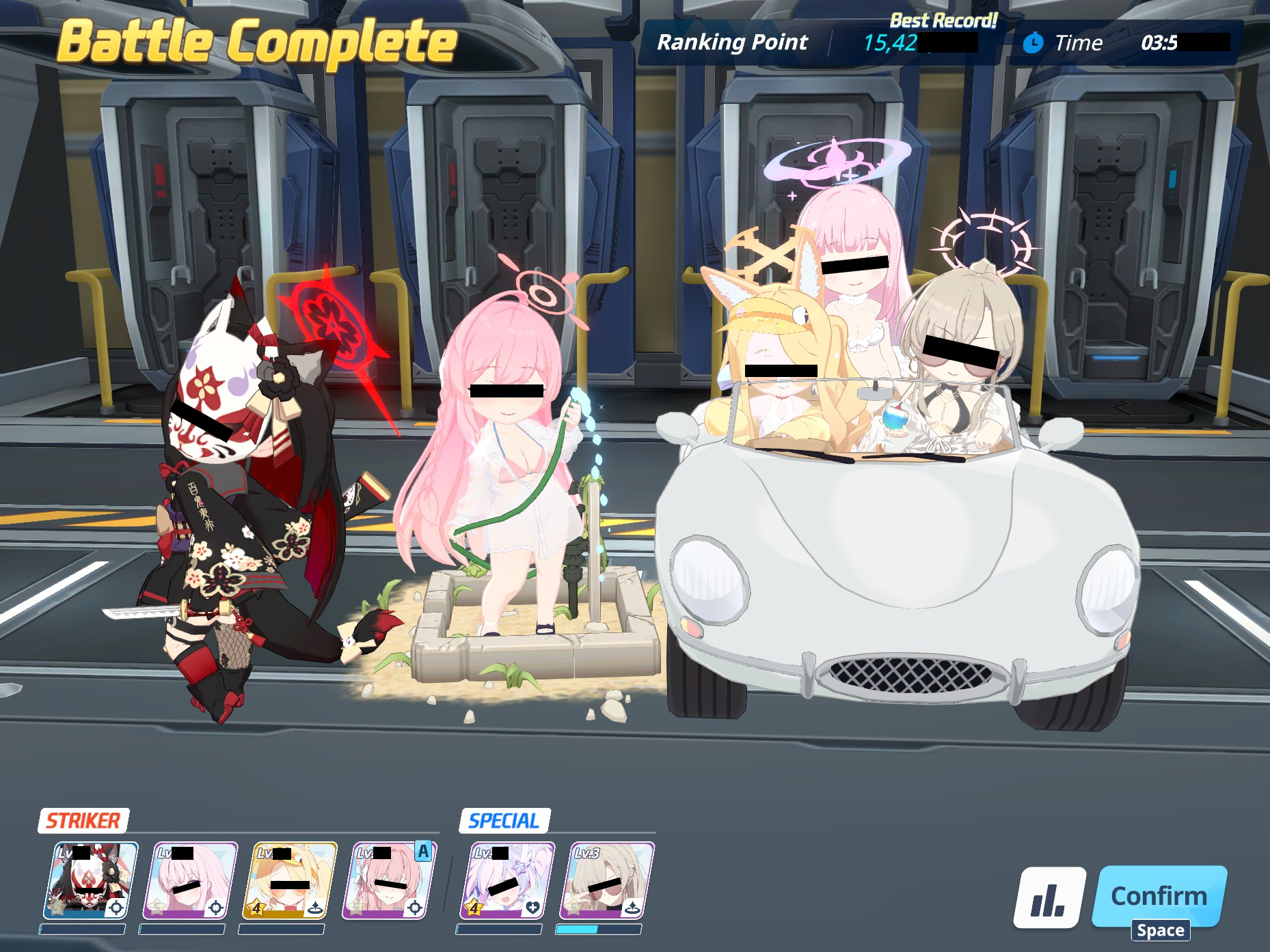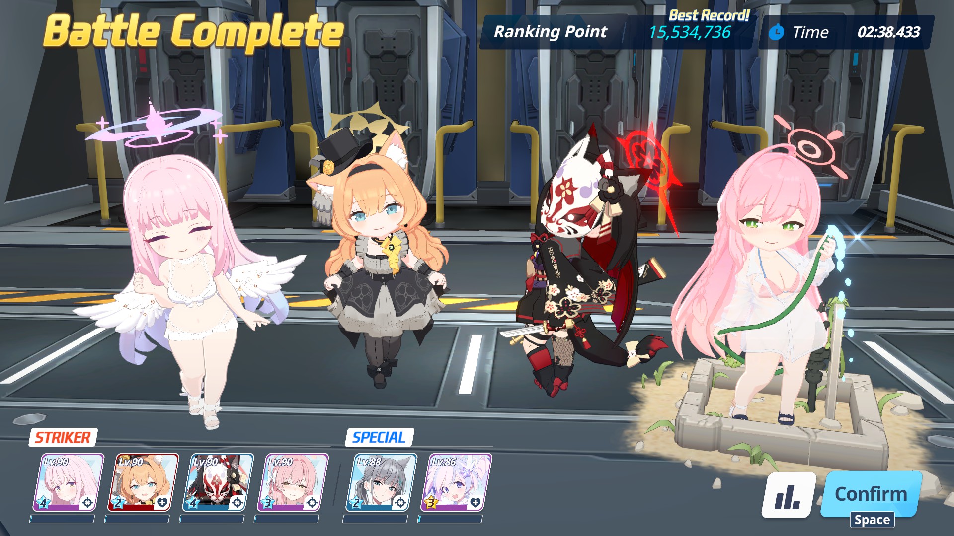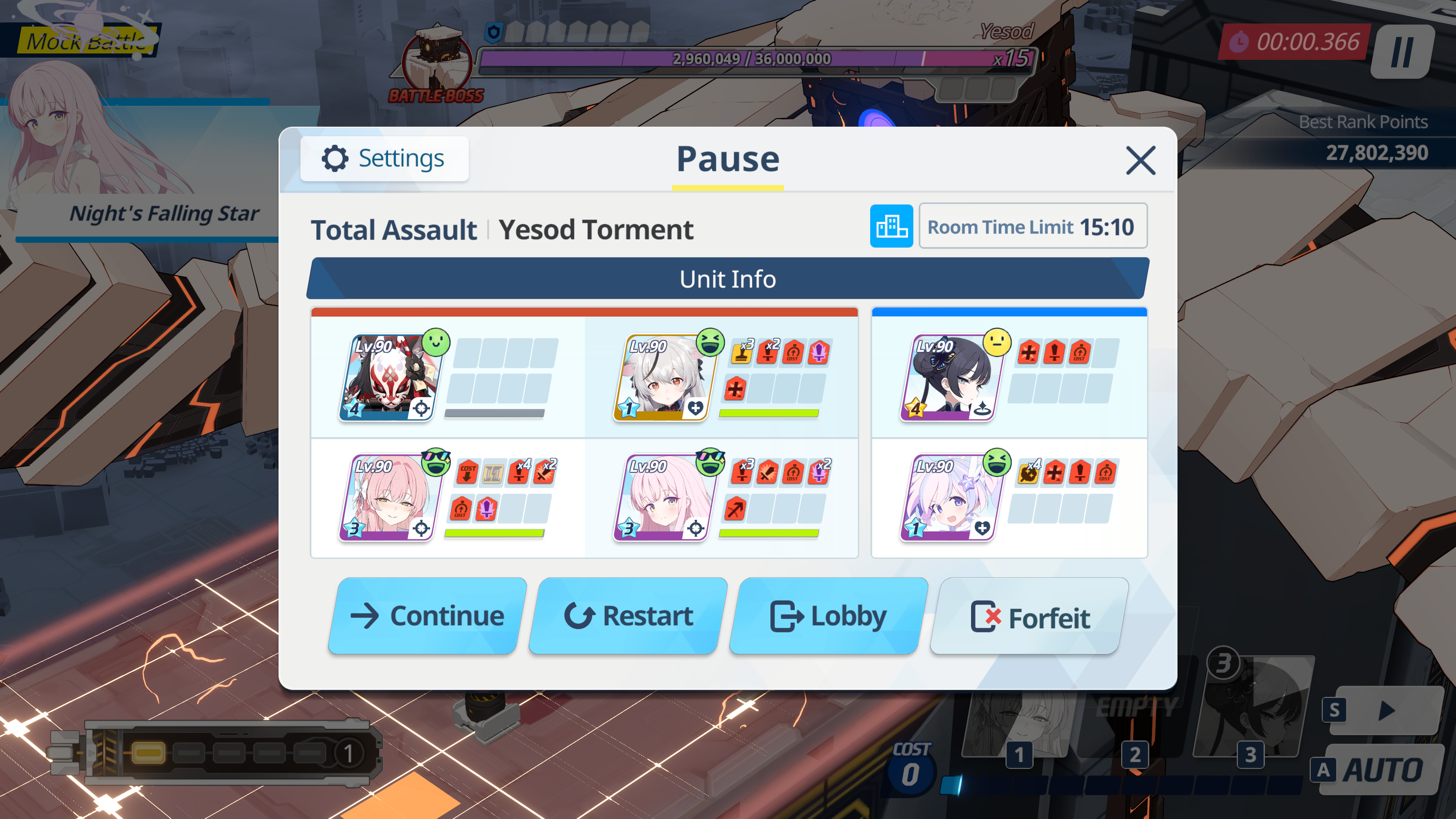 P2 was also kinda meh, I think I've got like a minute left at the end but my team (especially mSuzumi) was low on HP after one slam so I had to bring Koharu. Not sure what to do now