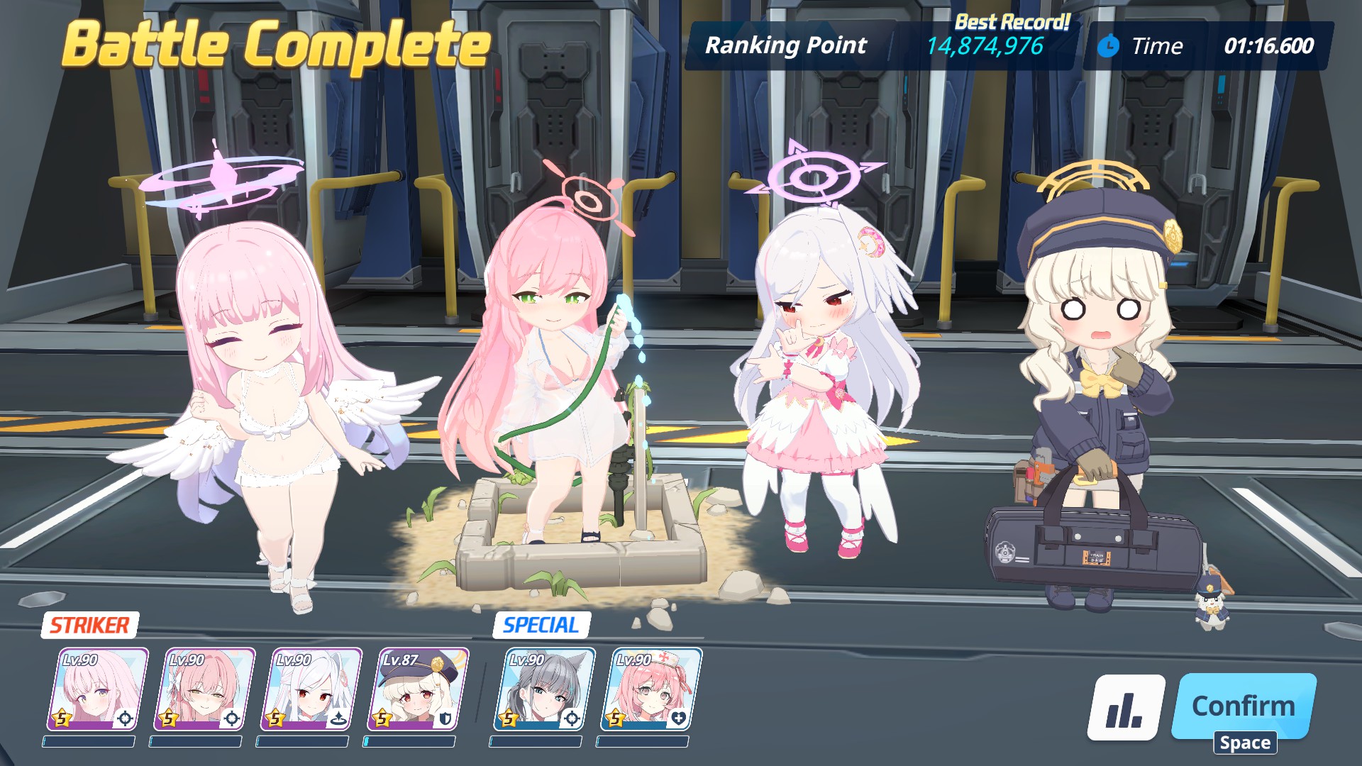 I left P1 with 1min20s to spare but sRenge and Wakamo are kinda low on hp even on extreme and my sMika isn't dealing enough damage (not sure how much would I have to upgrade her).