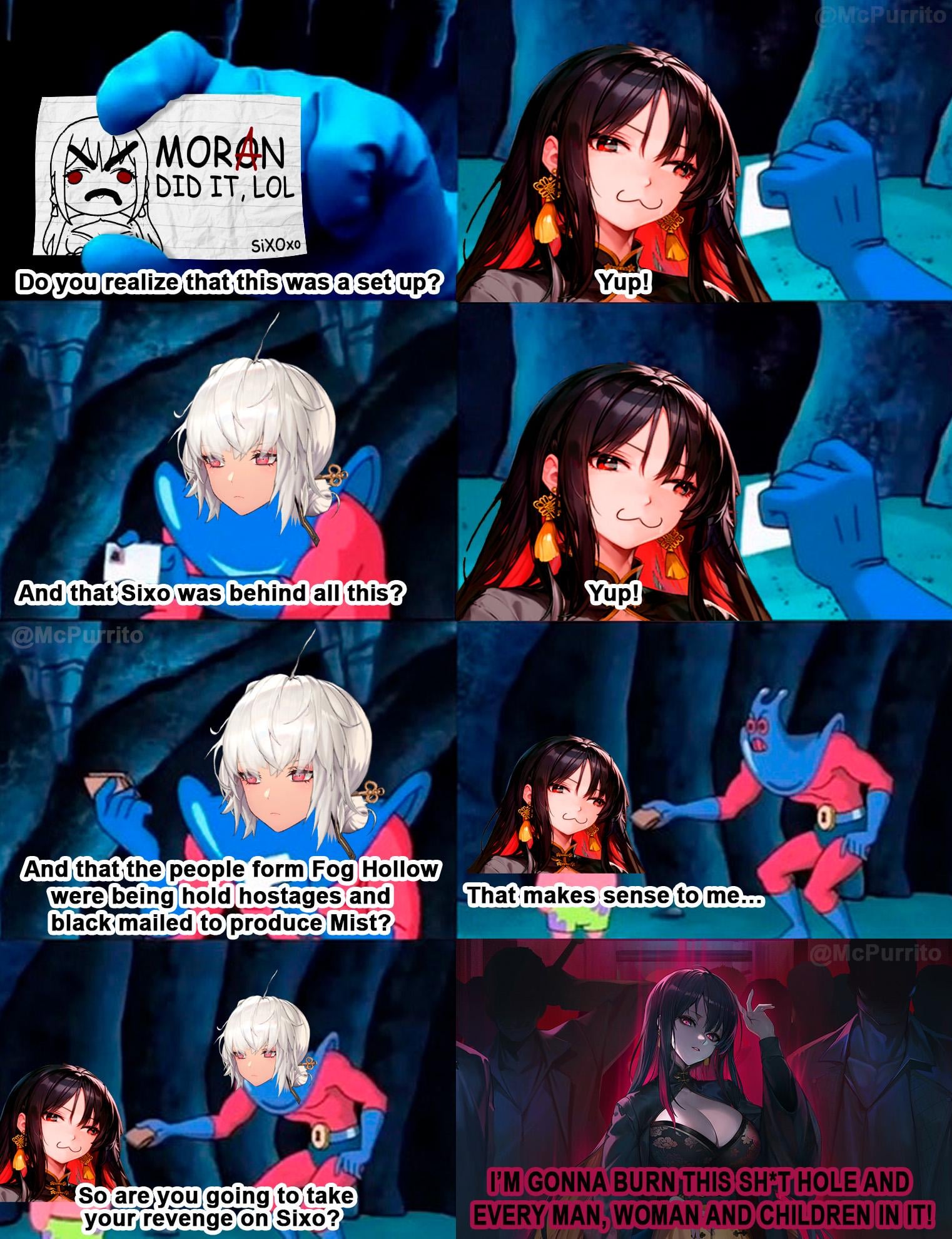 >>560706258>Treats Moran as an idiot Moran is an idiot, but when Moran was in trouble she pulled through. Friends say mean things to each other >Job doesn't excuse her meannessShe's not even mean, she's assertiveAlso I'm her lone of work you don't survive acting like Soda>Pretend crime lordShe is a real crime lord.She's extorts, blackmail, and shoots people. >MurdererLet's not bring up the genocide Moran accomplished
