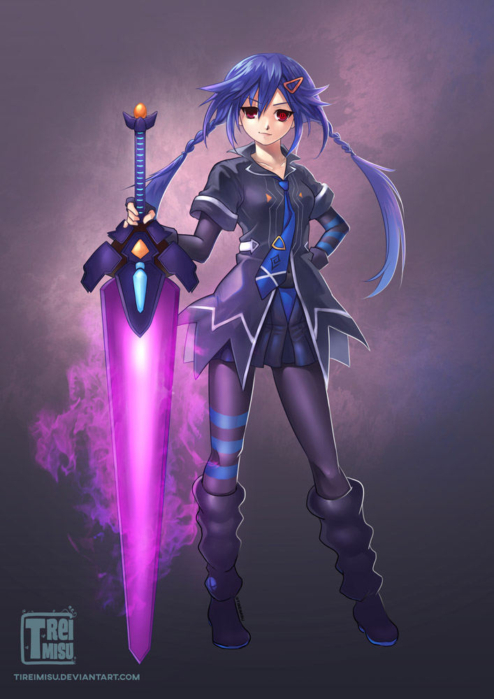 I LOVE BLACK HEART. I LOVE THE WAY SHE TALKS. I LOVE HER JAPANESE VOICE AND HER ENGLISH VOICE. I LOVE THE WAY SHE SAYS SHE HAS TO BE THE ONE DOING EVERYTHING. I LOVE HER REAL NAME WHICH IS NOIRE WHICH IS APPROPRIATE BECAUSE I ALWAYS FEEL NO IRE WHEN I HEAR HER. I LOVE THE WAY HER CLEARLY SOFT AND SILKY WHITE HAIR FLOWS. I LOVE THAT SHE'S 160 CM WHICH IS IMAGINE TIER BECAUSE I AM WAY TALLER THAN HER. I LOVE THAT SHE USES SWORDS BECAUSE IT IS MY FAVORITE WEAPON TO USE IN ROLE PLAYING GAMES. I LOVE THAT SHE CARRIES THE TEAM WITH GOOD ALL ROUND STATS. I LOVE THAT SHE TRUSTS ME ENOUGH TO HELP HER IN HER GAME WHEN SHE LOST ALL HER FRIENDS. HER SWORD IS REALLY NICELY DESIGNED IN HOW SIMPLE IT IS AND IT COMPLIMENTS HER NICE ELEGANT FIGURE. SHE HAS PERFECTLY SIZED HIPS AND BREASTS FOR HER FRAME. AS SHE WEIGHS 45KG SHE IS PRETTY LIGHT WHICH WOULD MAKE CARRYING HER TO A COMFORTABLE PLACE EASY WHEN SHE GETS TIRED FROM WORK. NOIRE GETS ALONG WELL WITH NEPTUNE WHICH IS NICE. I LOVE THAT SHE IS FRIENDS WITH BLANC AND VERT. I LOVE THAT SHE LIES ABOUT BEING OVERWORKED BECAUSE SHE DOESN'T WANT THE OTHERS TO WORRY ABOUT HER BUT WE ALL KNOW WE HAVE TO DO IT ANYWAY. I LOVE THE EAGERNESS SHE HAS WHEN DRAGGING ME AROUND TO SPEND THE DAY WITH HER. I LOVE THAT EVEN THOUGH SHE SAYS MEAN THINGS SHE CARES ABOUT HER FRIENDS.