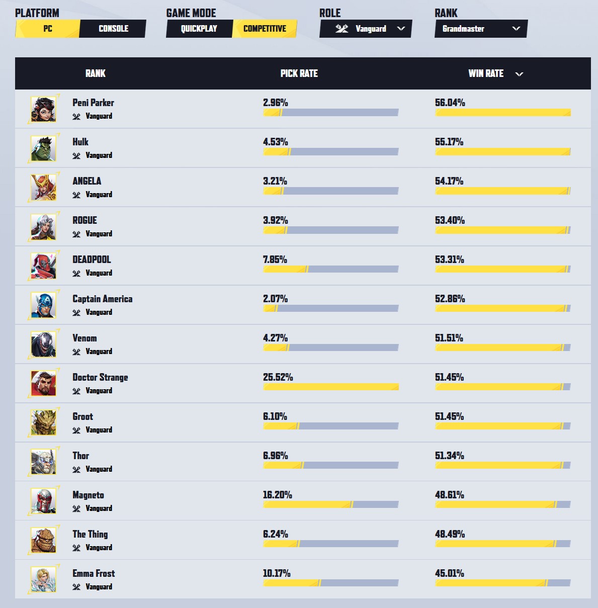 Hero Hot List: https://marvelrivals.com/heroes_data/