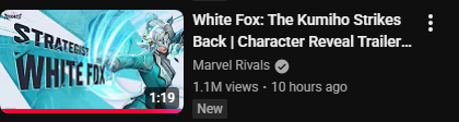 White Fox Character Reveal: https://youtu.be/esb1CBW2WK8