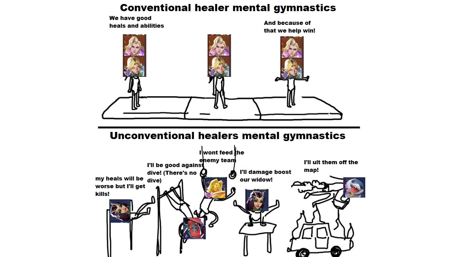 His whole rant is retarded because aiming is really not that hard to be competent with and most aim heroes in this game have the braindead playstyle of: stand behind tank, shoot enemy. 90% of 'high skill aim' players put 0 thought into positioning, movement, and the timing of when to go in and when to back off because the tank player they're standing behind does it for them and they just follow, but dive/brawl players MUST have game sense for all of that or else instantly explode. But DD was so tanky that you could just go in almost whenever you wanted and live forever so good riddance to his immense amount of bonus hp