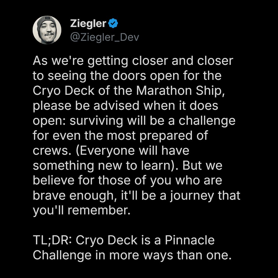 "It'll be a journey that you'll remember... Cryo Deck is a Pinnacle Challenge in more ways than one."