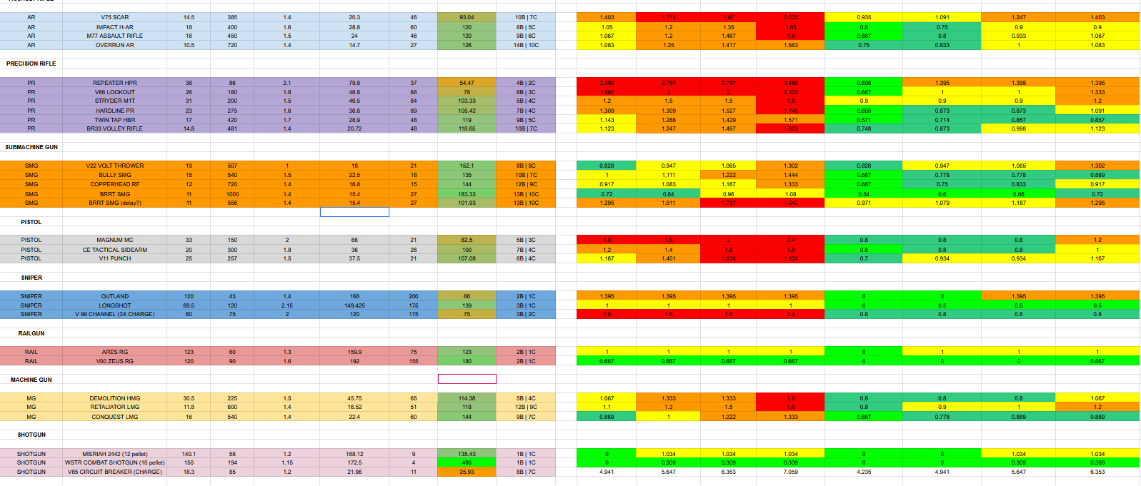 There's a lot of variety in engagement ranges and thus viable loadouts unless you're stomping perimeter with snipers.