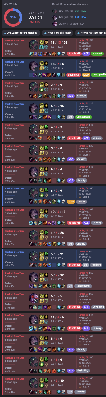 idk what's happening i had literally weeks of games where every game went by smoothly no one inting or anything straight up 70% wr and suddenly as i hit my peak almost every game there's someone mental booming in my team for even the most stupidest reasons like i swear there's some fucking algorithm that puts these freaks in my games