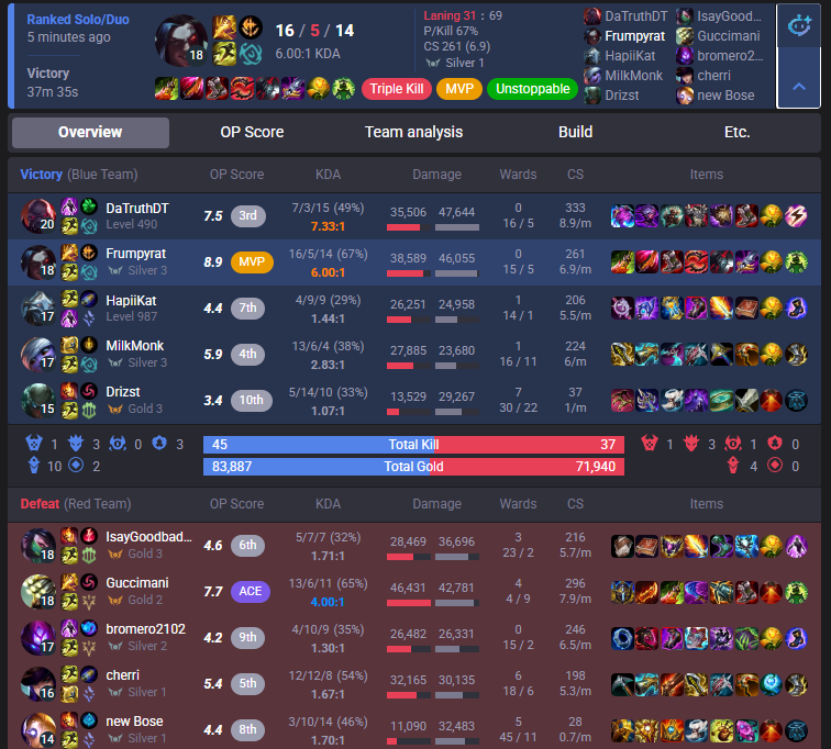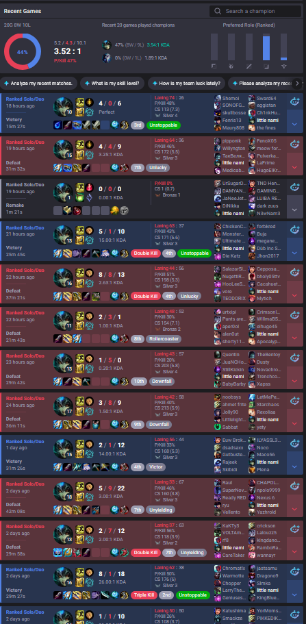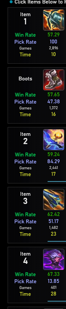 >>560722920if you also wanted to add tags at some point like on mobalytics, I could look into it and make a list with some suggestions. Of course you'd have to let me know to what data you have access to based on which these could be assigned. I'd make them a bit spicier too - lolg tier rather than "vision focused" or "red side lover", just offering some help with this fun project as it seems fun.