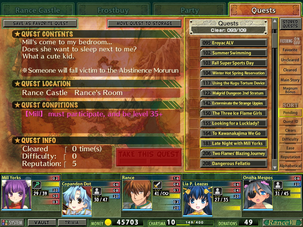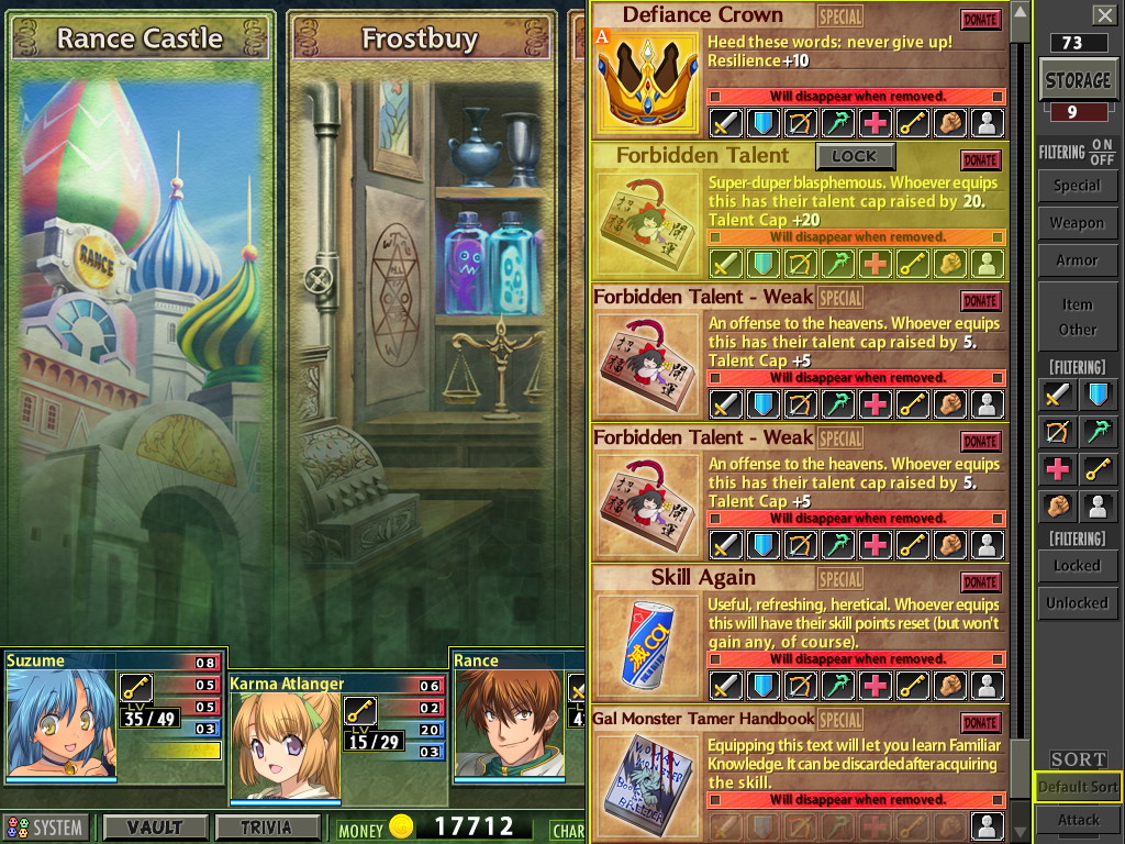 I hated Rance Quest but the writing in it was fun and it let me interact with gal monsters.