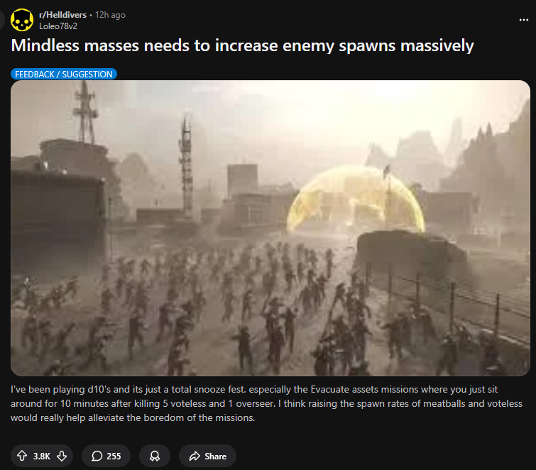Funny how I started to get server issues once spawning got more aggressive. Question to everyone. Did they mess with visuals. I can't see shit anymore in this game. It's always too dark. Too bright. Too much visual clutter. It's pain in ass to snipe harvesters with amr now becouse I can't see them half the time. In this planet and last one.