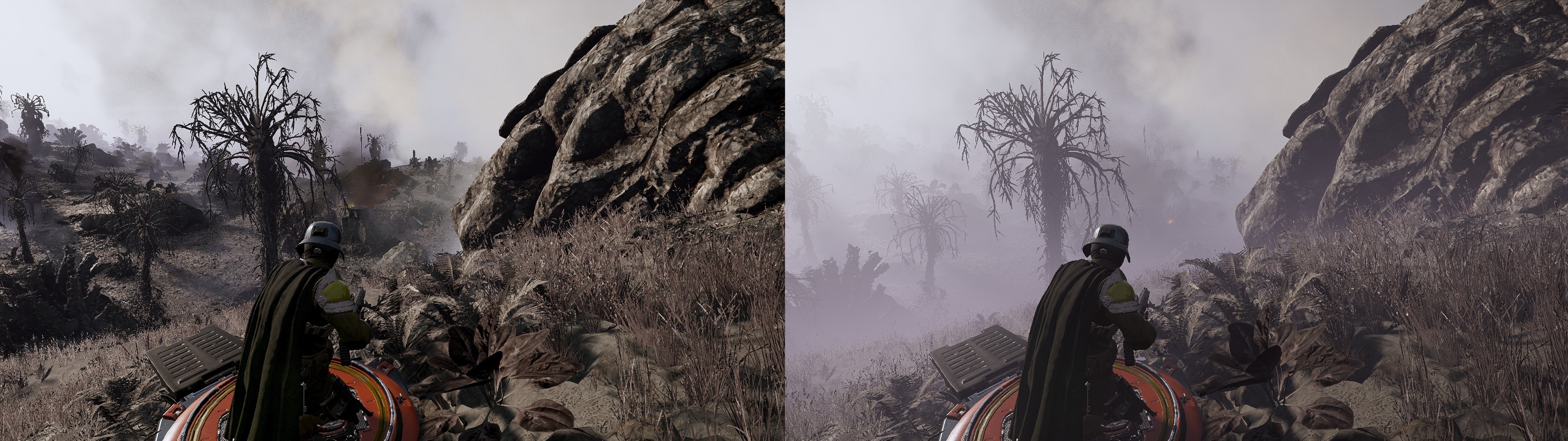 >>560822281arrowhead is obsessed with turning every playable planet into different colored versions of silent hill for some reason. The only biome in the game with good visibility is the moon biome and they rarely ever have those available.The fog frustrated me so much back when gloom bugs were introduced it made me quit the game for months. I almost never see people bring it up but the visibility of this game is absolutely terrible and it's even worse to think about when I remember how pretty it can be when everything isn't covered in piss fog.