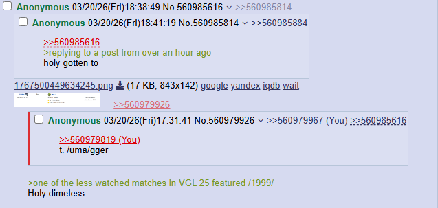 >>560979926>one of the less watched matches in VGL 25 featured /1999/Holy dimeless.