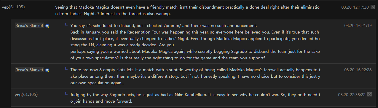 >>560791495>Holy fucking kinoI can just hear Crimson or Sou going>HOLY FUCKING RED CARD!in my mind as I was reading this
