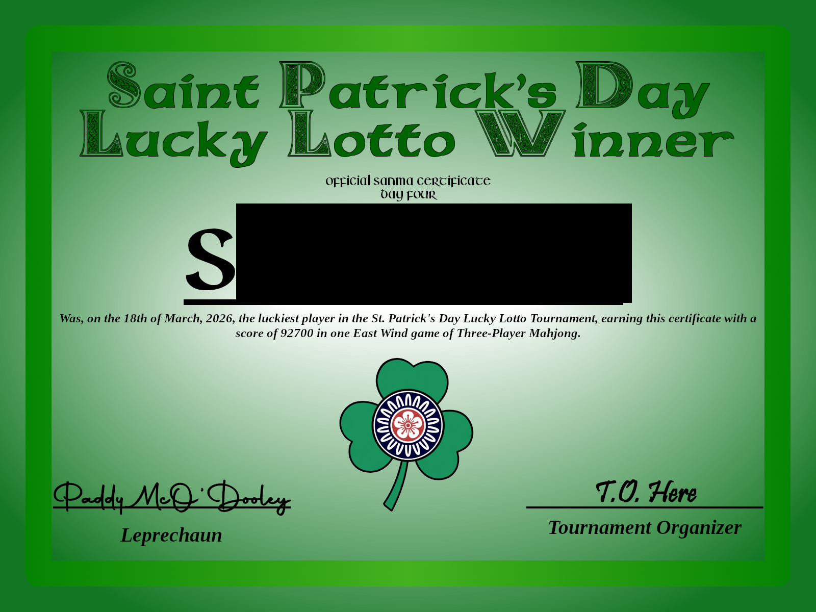 The lottery for Day Four is closed. Our winner for today is S*******! Again!Uncensored cert: https://files.catbox.moe/mqxbpg.pngSheet: https://files.catbox.moe/fkdo2r.pdfCongratulations to our winner for collecting not one, but two of these rare and highly collectible sanma certs! There are only three left, so be sure to play in today's lotto for your chance to win!