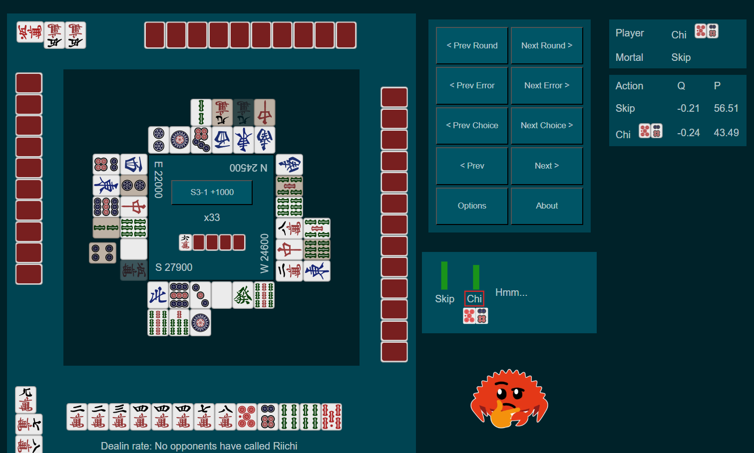 >>560823439It's a bad wait 5200 dama with 3p but it also feels like a waste to dama when you aren't going to be changing your wait ever>>560823398>>560823505>>560823520>>560823525It felt like +2 han was enough of a reason to cut my winning tiles in half, but alasI guess the point difference + the kan is too important to allow thatGay ass website thinks I'm spamming with too many quotes
