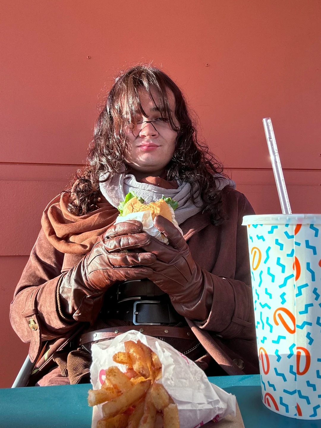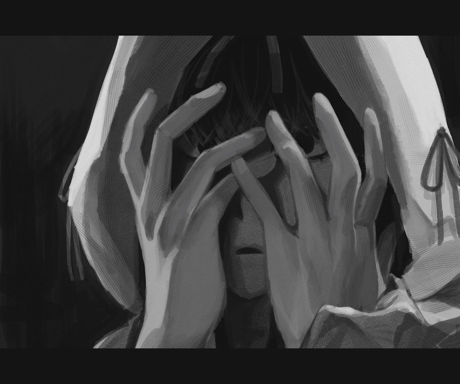 >Half covered face