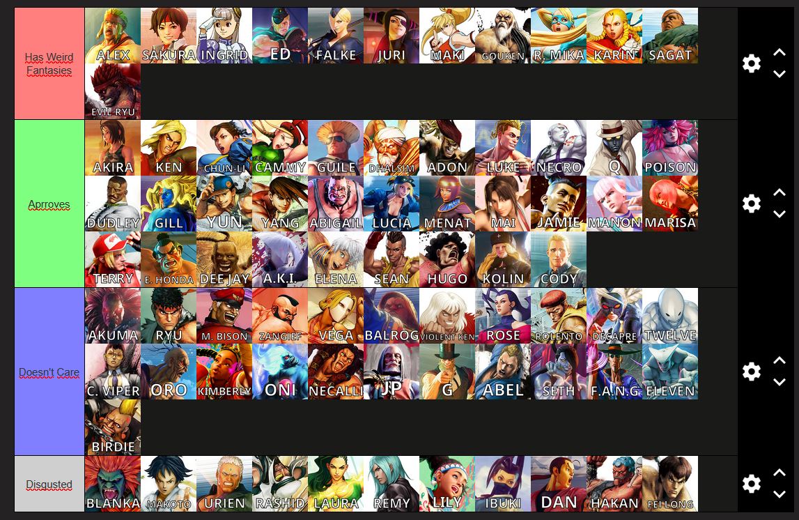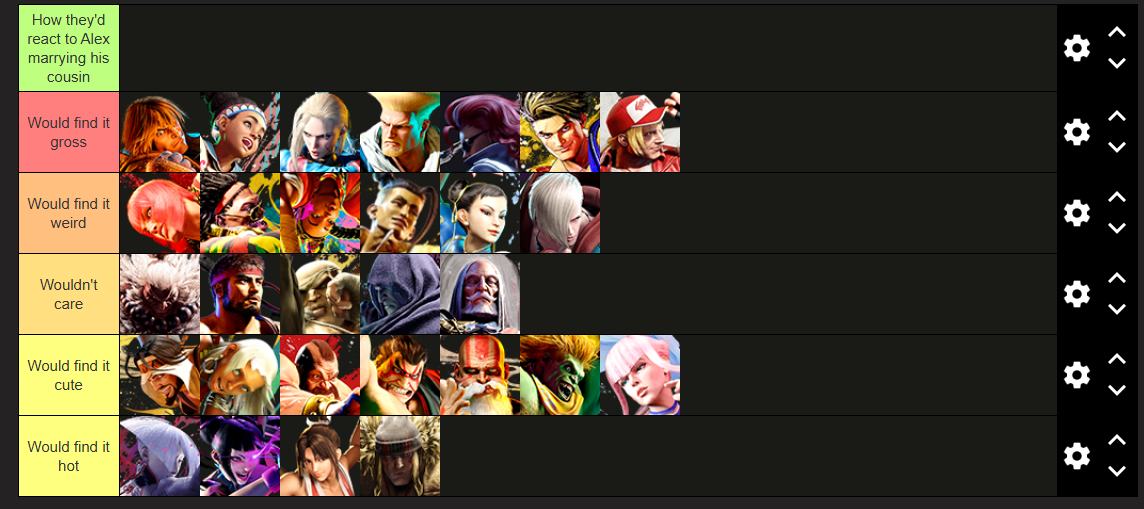 we need a tier list of which sf6 character would be grossed out by alex banging his cousin