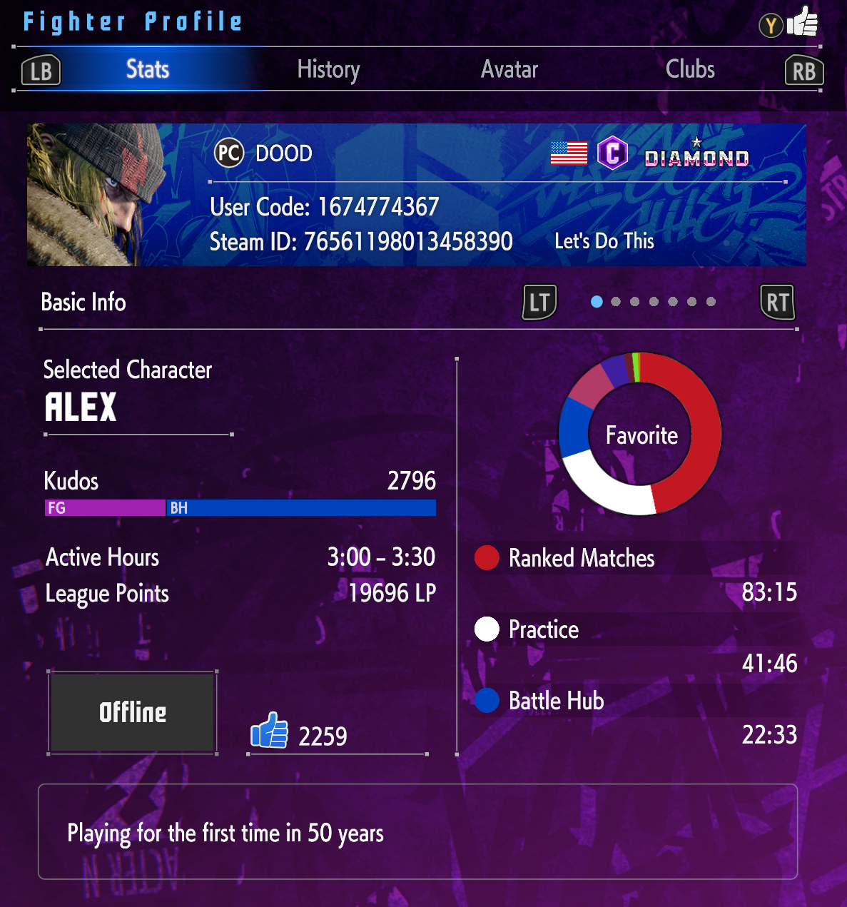 I checked out Sahara's buckler profile, his stats are absurd. He has over double the matches played of Punk, Kakeru, or Leshar (top players that play online a lot) with 81,000. 2100 hours in training, 1800 hours in ranked, 1200 hours in custom rooms. Never seen a profile with that many hours. Some rankedboars have more in ranked, like Hurricane and that manon, but not total. Even Hurricane has less total matches played, and he has by far the most LP out of anyone. Sahara was 1800 in phase 1 and then legend by phase 2, he really just grinded this game more than pretty much anyone