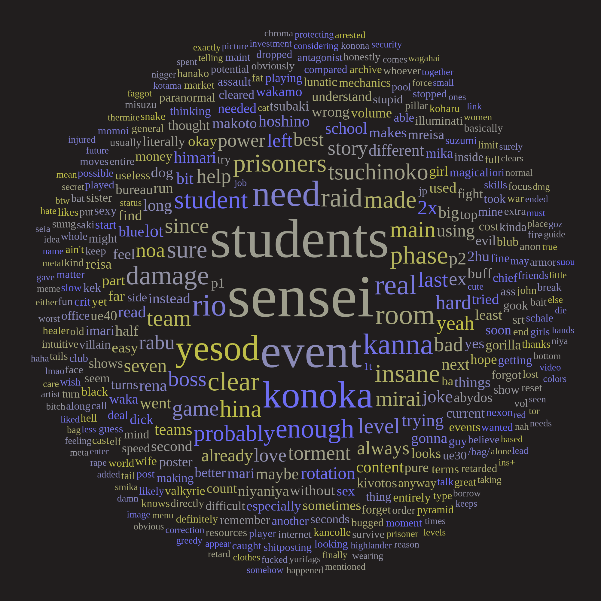 >>560838290People skipped 2x normals just to farm more of the michiru event. It's good for both ligma and credits. And you can predict rolls however you want but sometimes you just get got and need to spend 400 rolls.
