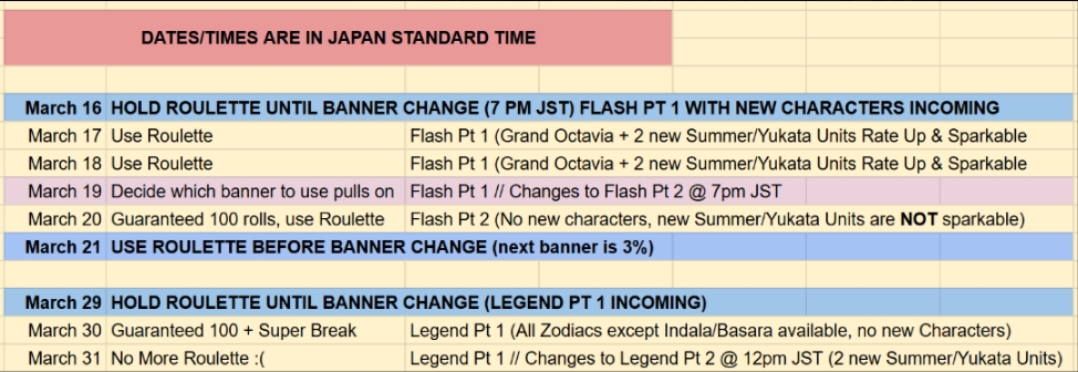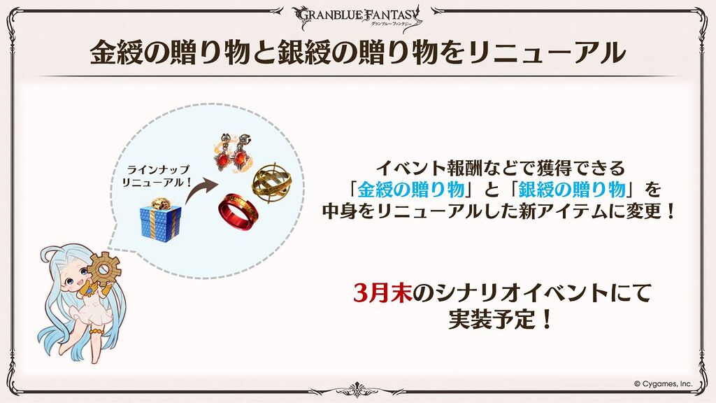>Steam Client Releasedsteam.granbluefantasy.com>12th Anniversary 03/10 - 03/31Now Available:Grand Lecia Style ChangeVikala & Siete Anniversary SkinsLancer OriginZodiac SelectorRank Uncap (425)Character Homescreen update>Roadmap- https://gbf.wiki/User:Umikin/Timeline>March Schedule3/15 Exo Cocytus Crucible Rerun3/16 Grand Octavia, S.Apollo, Y.Eustace3/31 S.Anthuria & Y.Alliah3/23 Tales of Arcarum: The Moon Rerun3/29 QOL Golden Gift Adjustment>April Schedule4/1 April Fool's4/6 Water Advantage GW4/14 ROTB Update4/17 ...and you. added to Side Stories4/23 New MSQ Chapters & Fylkis4/23 Light/Dark Taboo raids>Future Schedule5/15 - FMA Collab6/? - Illustrious FLB & Transcendence7/? - Wizard Origin>Granblue Relink: Endless Ragnarok - 7/9Latest Info>https://www.youtube.com/watch?v=NaKBXO0HHa4Maggie/Bea/Eustace/Gallanza playable>How to StartGo to https://game.granbluefantasy.jp in any Chromium-based browser>READ THE FAQ before posting - It will answer most of your questions if you're new or learninghttps://gbf.wiki/FAQ>Helpful links - These links contain useful information like important guides and other stuffGranblue Fantasy Toolbox - https://mizagbf.github.io/GBF Advanced Search - https://gbfas.ioGBF Grid and Teambuilding - https://gbfguide.comMain Story Transcript - https://calico.nekoweb.org/gbf/story/Wiki Advanced Grids - https://gbf.wiki/Advanced_Grids/gbfg/ Mega Pastebin - https://pastebin.com/xHkyQTy8/gbfg/ Crew Directory - https://rentry.org/gbfgcrewsPrevious: >>560764771