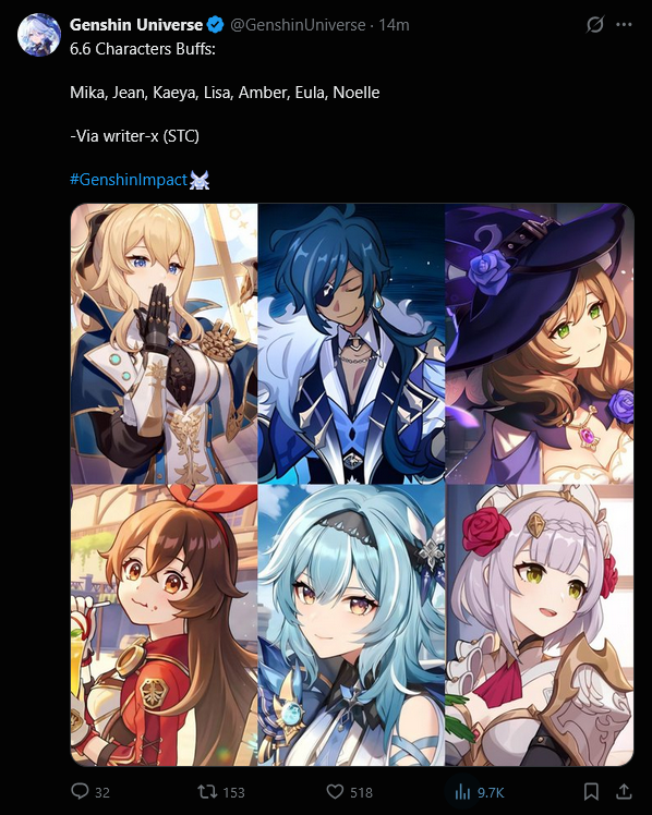 >>560848687Clorinde saved this dog shit patch, reminder there are still 2 and a half weeks of no content to go.