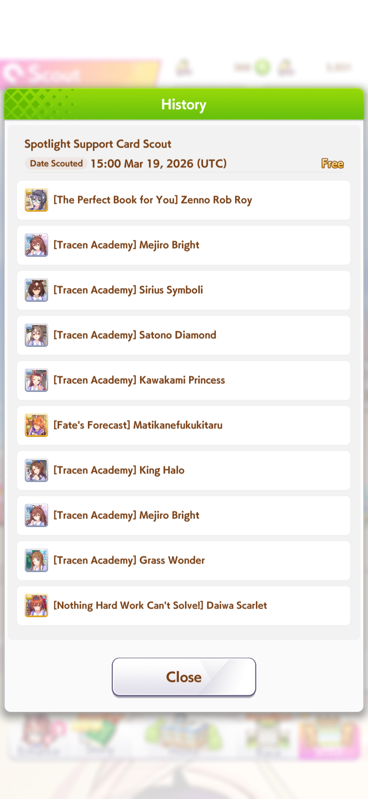 03/26 - Mejiro Bright (3*), Curren Chan (SSR), Zenno Rob Roy (SSR)