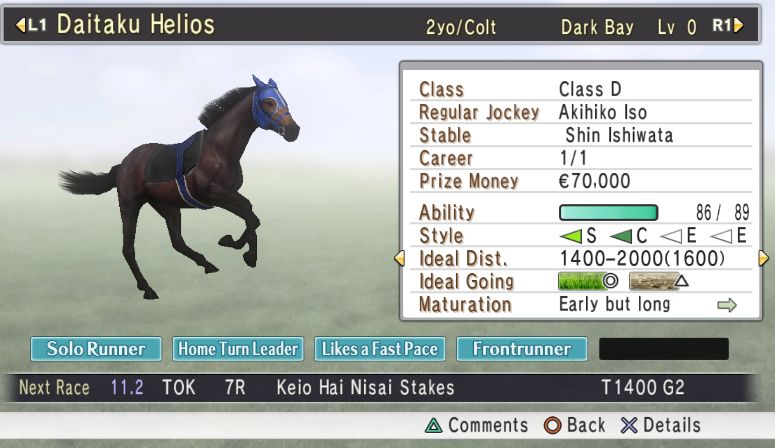 Queen of winter, all her G1 wins have come from end of the year races.