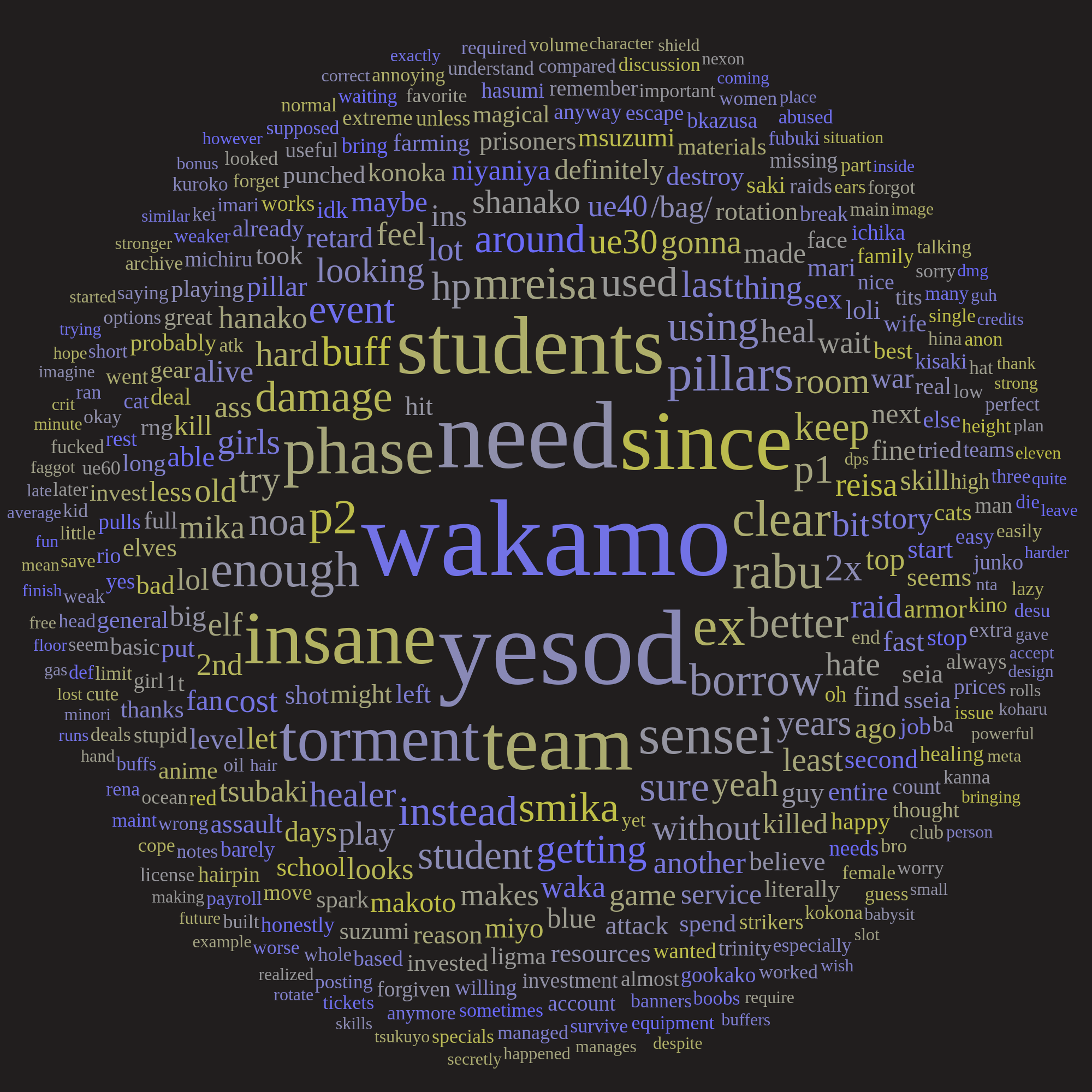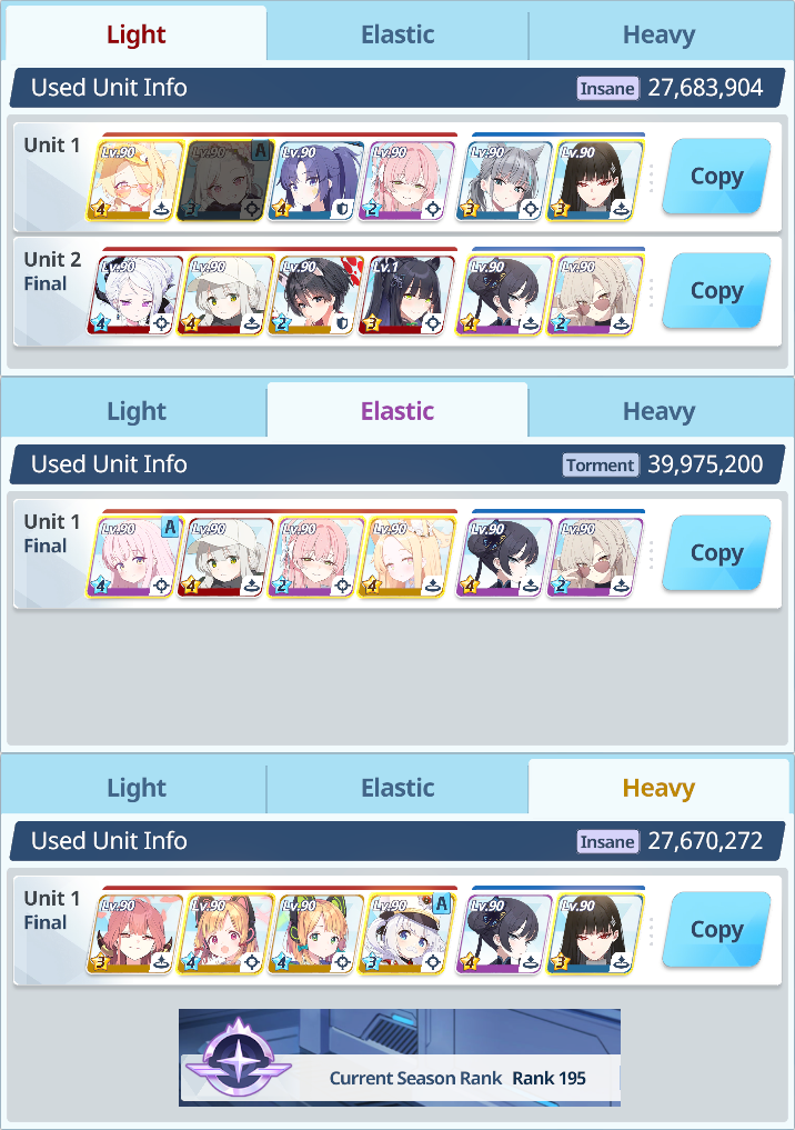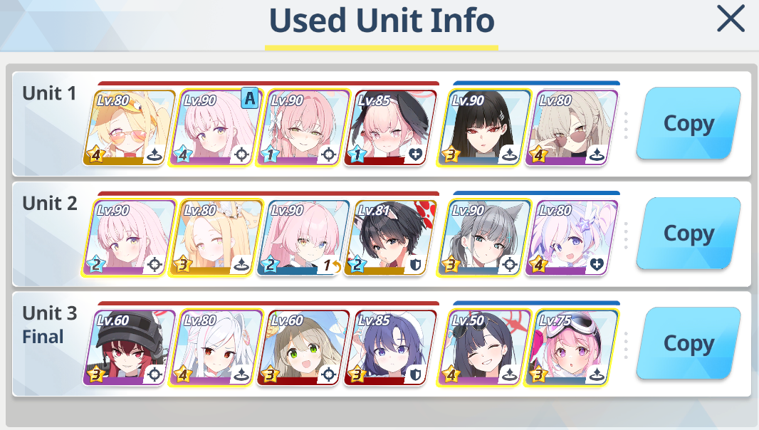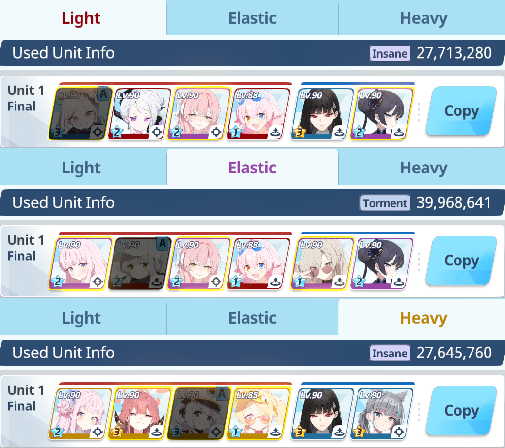 >>560840006>>560839967>>560839865NTA but Yesod (Extreme, Insane, Torment, Lunatic) is literally undoable without:>Wakamo>Summer Mika>Summer Hanako>Kisaki>NoaThere's just no options to replace them at all