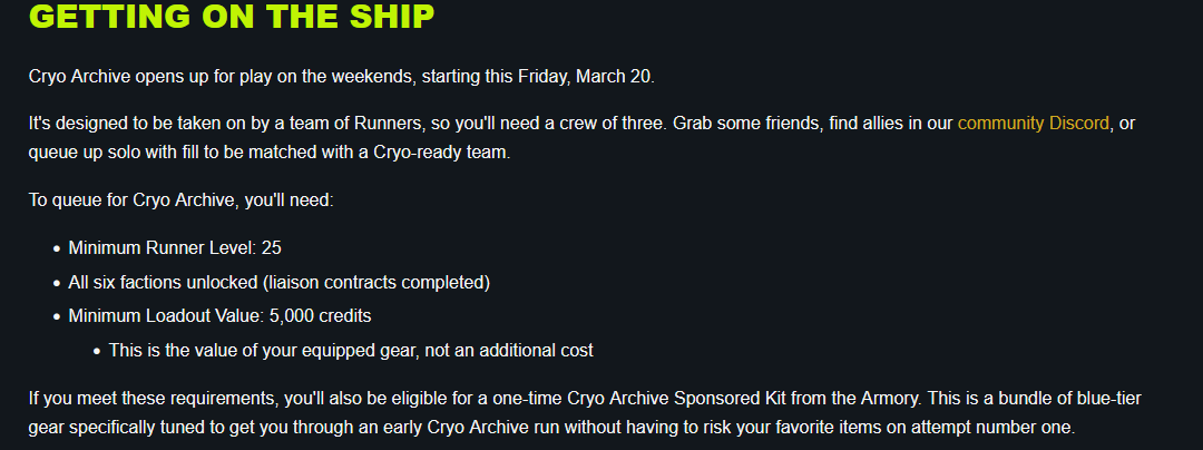 Make sure to bring your A game into the Cryo Archive