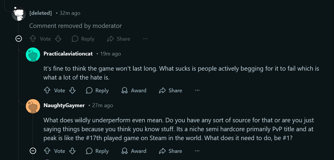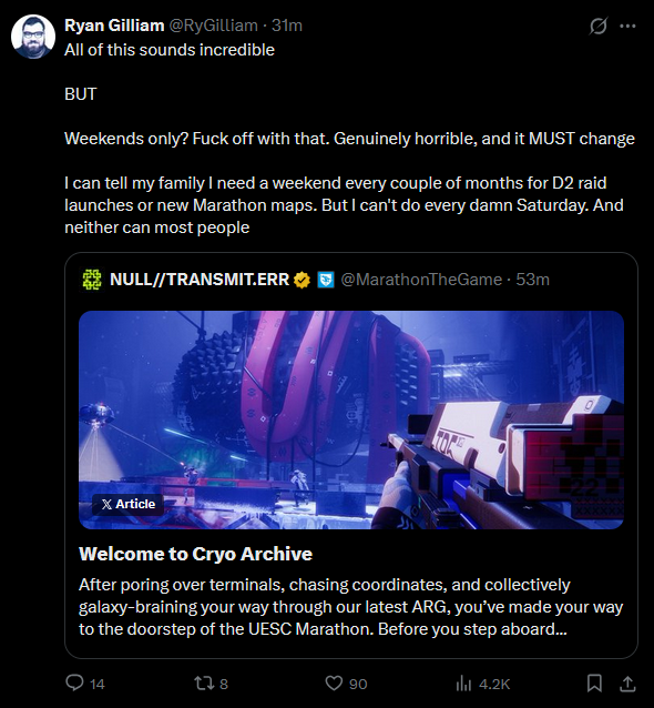 >>560876023So, people don't seem to understand the meta level things taking place here that have doomed Bungie.It's basically delusion on every level, from Sony to Bungie. Sony bought Bungie thinking that the nonsense they were spewing about sales figures was true (it wasn't) and since has essentially lose hundreds of millions to perhaps billions (to the point that in an official investor conference Sony had to reveal that Bungie was singlehandedly causing Sony Entertainment to underperform). After a series of disasters with Destiny 2 and multiple rounds of layoffs at Bungie, Sony finally has forced them into an unwinnable corner to get them under control, that being a contractual option whereby if Marathon does not become one of the top 5-10 (the exact figure is unclear) selling games for the year, they can completely take them over and do anything from liquidation to shuffling employees to other internal studios.Bungie delusionally thought that Destiny 2 fans would be a slave captive audience forever in the meantime while they worked on Marathon to help mitigate this, but Destiny fans finally had enough and the playercounts have collapsed to 5k players per day, with no indication that new content will substantially boost this. Bungie delusionally believed that Marathon would be pulling Destiny player numbers each day; the ARG bot killing step is the reveal for this among other things. Bungie is a studio composed of delusional, completely out of touch whackos who have finally run out of rope. Mass layoffs are now programmed due to Marathon being barely in the top 10 sellers on steam during its launch week, and in the top 20s(!!!) on console. I have no idea what the future of Marathon looks like, but I am not holding out hope for anything past the night map and a new runner before it gets put on maintenance mode.