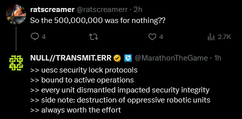 >>560878618Killing bots makes the ARG puzzle easier which got solved.