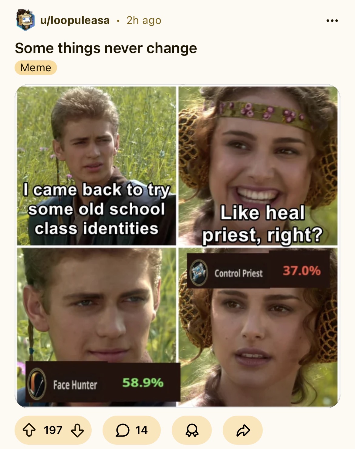 >>560847548You reckon it will fare better when druid and hunter are nerfed?Warrior still fucks with it I guess though