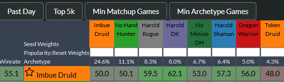 >>560851154Why so few harolds I wonderHarold shama has a somewhat rough time vs aggro druid (people call it imbue but its the same shit) but it's not unwinnable...