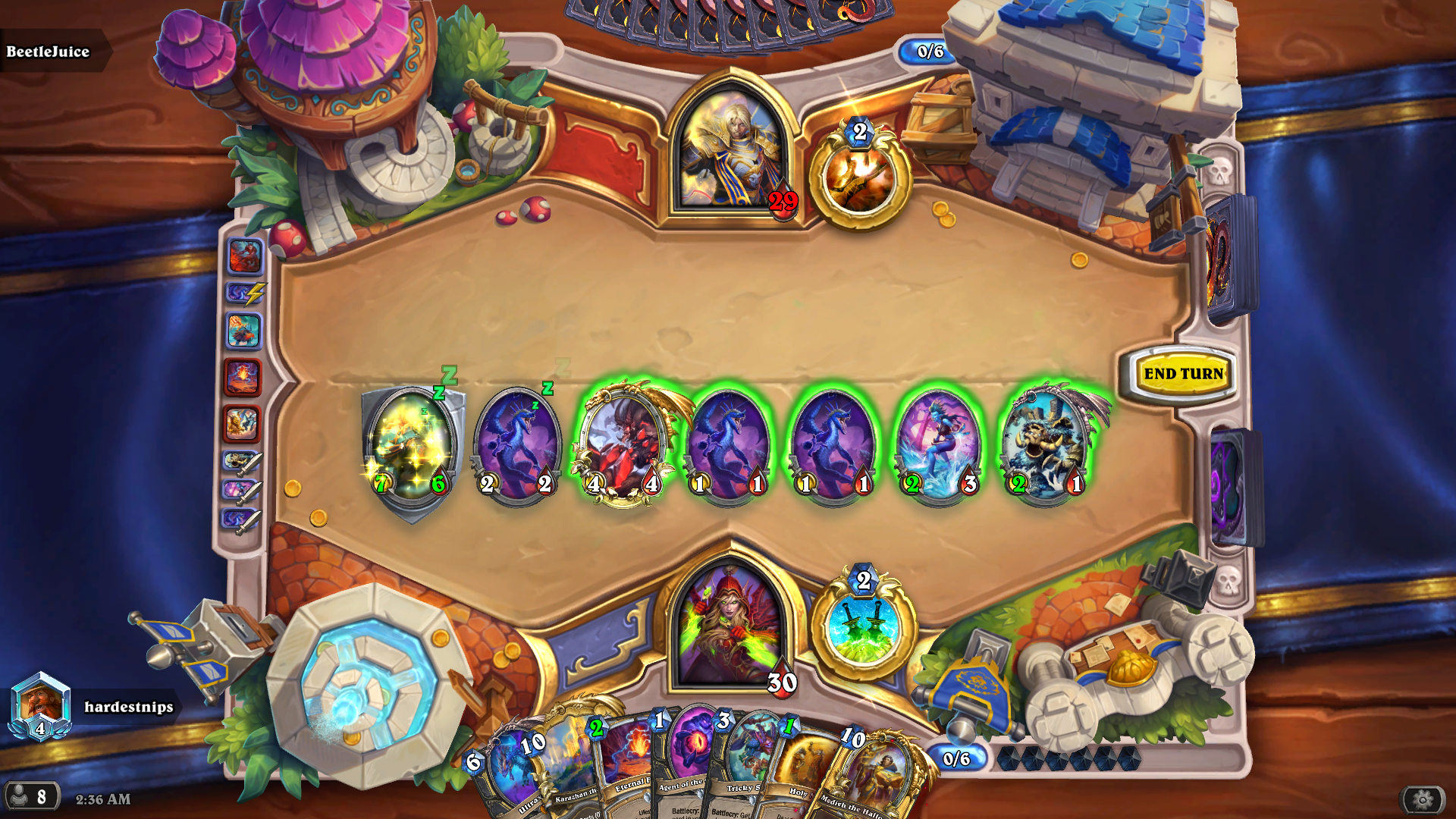 >>560848934i faced.... waited when he boardlock himself with 1/1 shit (NO SHARTaura) then drop warlock aoe on 6 he play noz + tokens... wiped him again with wormhole Losing shartaura biggest paladin hit...