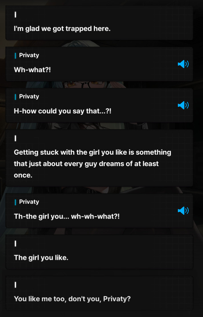 We are on the first day of one of the most fanservice-y events we have gotten in a while, with a whole vn motif and even routes! Yet we are moving as fast an any other 2 week nothingburger event what the hell. Aren't Privaty and Arcana popular and well liked?