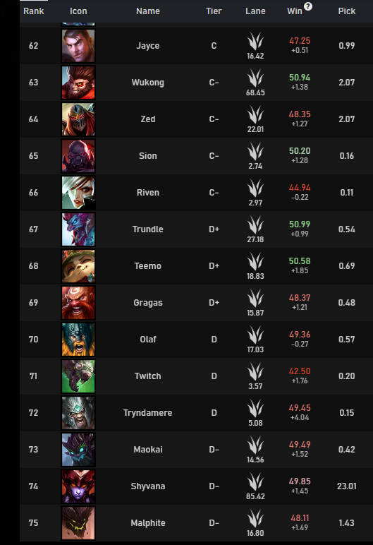 >>560897201Every other minute someone posts about a "perfect" build that "fixes shyvana", yet her WR in emerald+ is still 46%. I doubt any build is consistently good on her and makes her competitive with other junglersI can fix her though