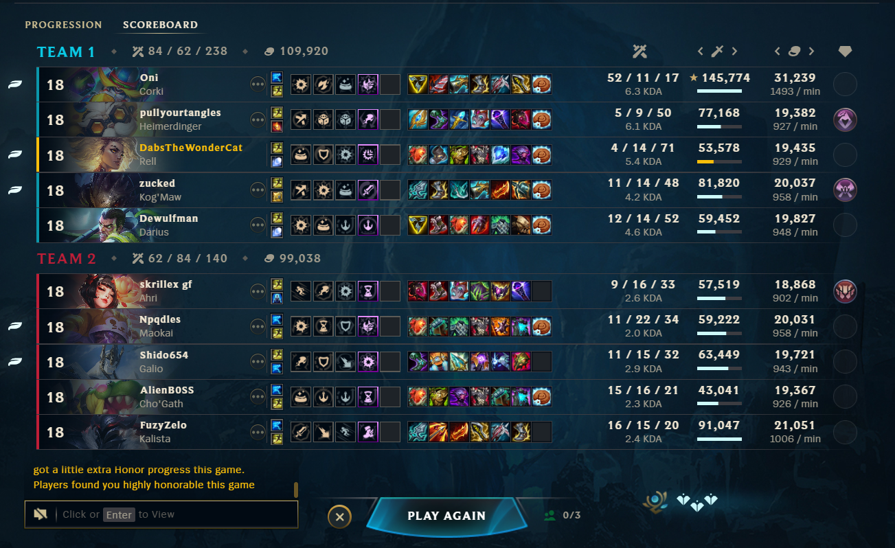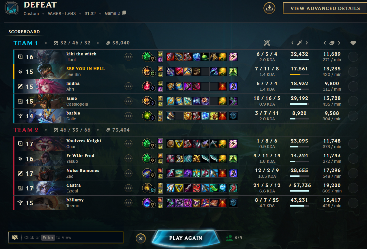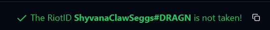 >>560905180It's actually JUST inside of the character limit. I'm still trying to mull them over though.And yeah, I wish I didn't have to hit some fucking website that pings the API...There used to be a button I think, but that was before we swapped to Riot IDs.