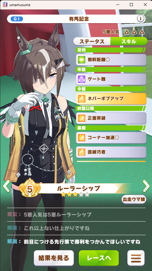 >>560866981it's optionaldespite being g1, it's optional, if the training is good take the trainingotherwise race, because you'd want stat/shopreset/rival race free skill