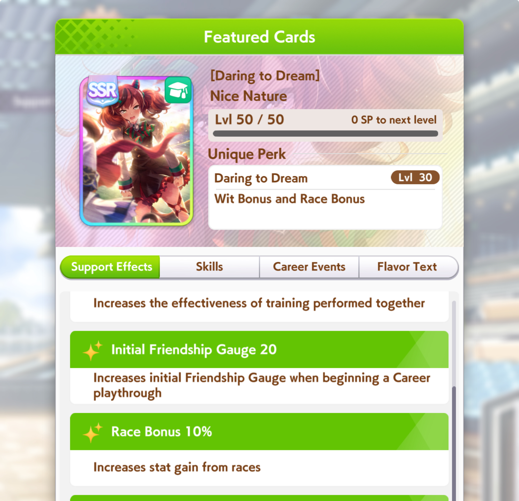 >>560884727The Haru Urara SSR guts from the Friend Points shop is also good if MLB'd, or so they say, I''ve never liked guts cards or am a fan of the guts button, anyways, it's free and the best guts card in a long time