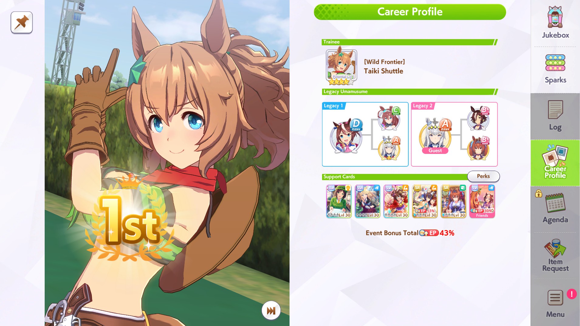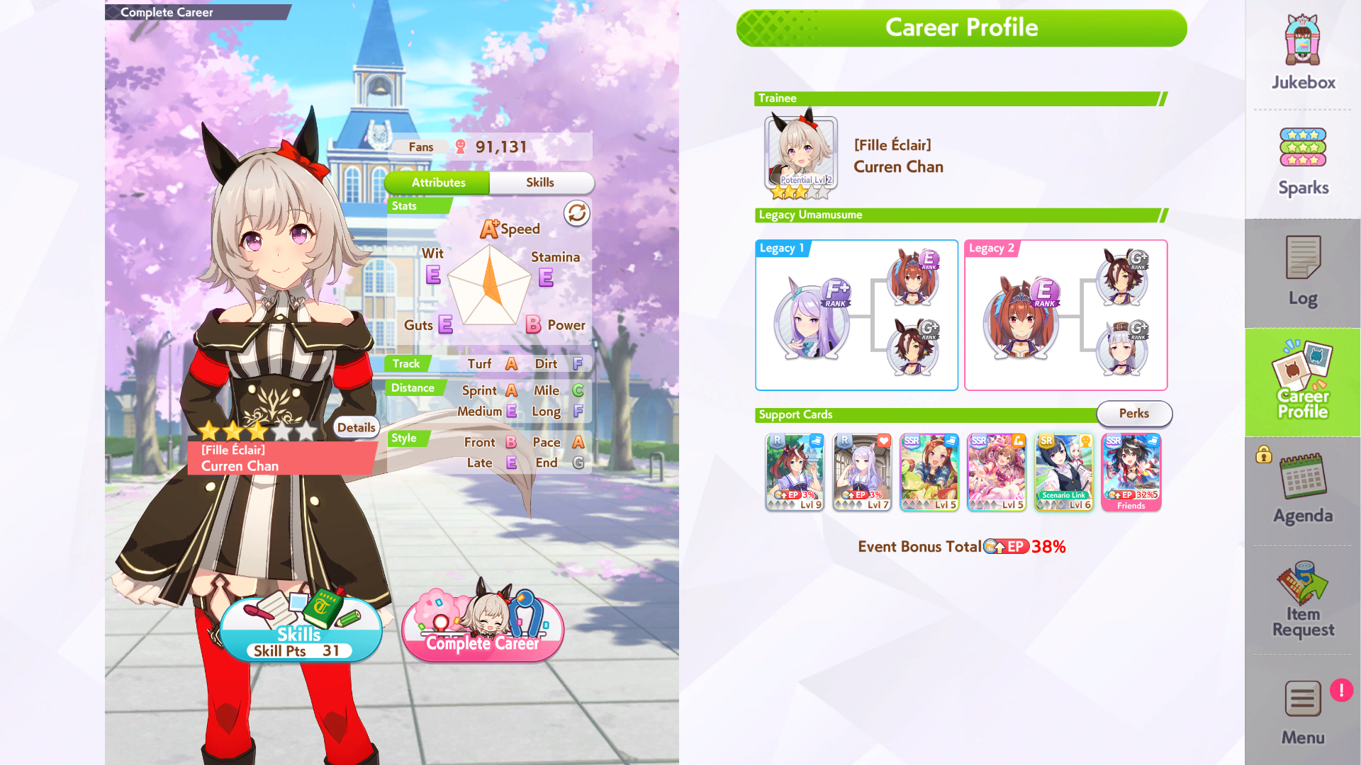 Previous: >>560839172>Global Game NewsLink your account to Cygames iDCurrent Scenario: Make A New Track aka "Trackblazer"Current Rate Up Trainee: Kitasan Black (3*), Matikanetannhauser (2*)Current Rate Up Support Cards: SSR Narita Top Road (Speed), SR Admire Vega (Guts), SR Mejiro Ryan (Stamina), SR Bakushin (Power)Current CM: Pisces Cup - Hanshin Turf 3200mhttps://umamusume.com/news/632/03/02 - 04/14 - Halved TP Cost & 2x Career Mode Rewards03/12 - 04/15 - Paid 3* & SSR Selector available in Carats Shop03/12 - 03/24 - Free Daily 10-Scout03/12 - Flying Run-Up! Story Event03/22 - Satono Diamond (3*), Curren Chan (SSR), Marvelous Sunday (SSR)03/23 - First Anniversary Part 303/23 - Agnes Tachyon, Narita Taishin, Narita Brian legends races03/26 - First Anniversary Part 403/26 - Mejiro Bright (3*), Curren Chan (SSR), Zenno Rob Roy (SSR)03/26 - 04/05 - Pisces Cup - Long/Right/Spring/Heavy/3200https://pages.snep.pw/uma/anni-skill-changes/>JP Game NewsCurrent Rate Up: Victoire Pisa (3*), AI-Chan (3*), SSR Yanko, SSR CasinoNew Scenario "Beyond Dreams" releasedTimeline: https://uma.moe/timelineCygames Webstore: https://webstore.cygames.com/en/umamusume_en/>Thread Clubshttps://rentry.co/umaglobalclublistYou must be E3 (20k points) to join a circle. Apply with /uma/ or /vg/ in your profile or post ID in the thread.>All Guides & Resourceshttps://rentry.org/uma26Game databasehttps://gametora.com/umamusume (Click the gear to switch between JP / global server info)A basic guide for newfagshttps://rentry.org/umaglobalFind networks if your region is blocked from the game or clienthttps://www.umavpn.top/Seiyuu & Concertshttps://rentry.org/umstUmamusume Birthday Calendarhttps://ウマ娘.攻略.tools/events/birthdayUma Texthttps://umareader.idsmile.xyz/
