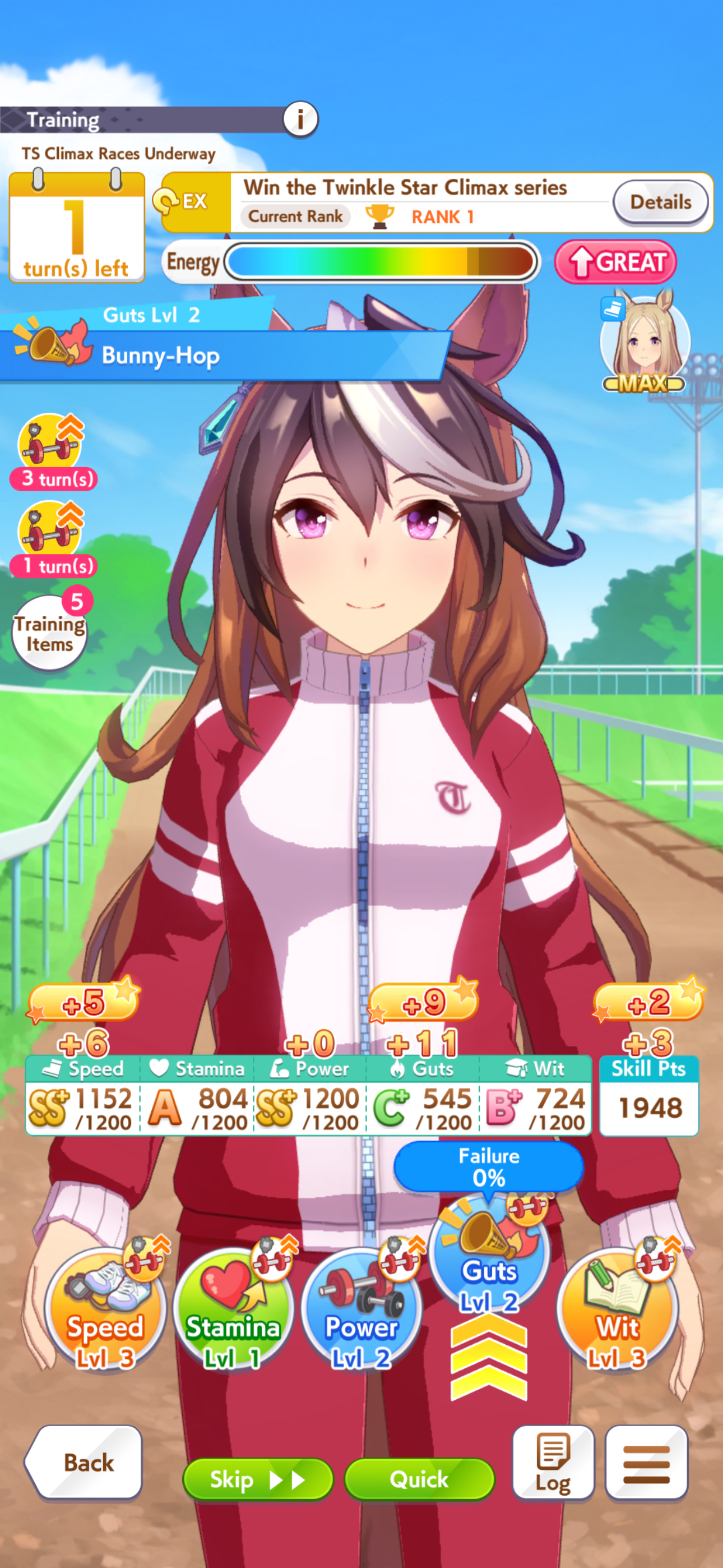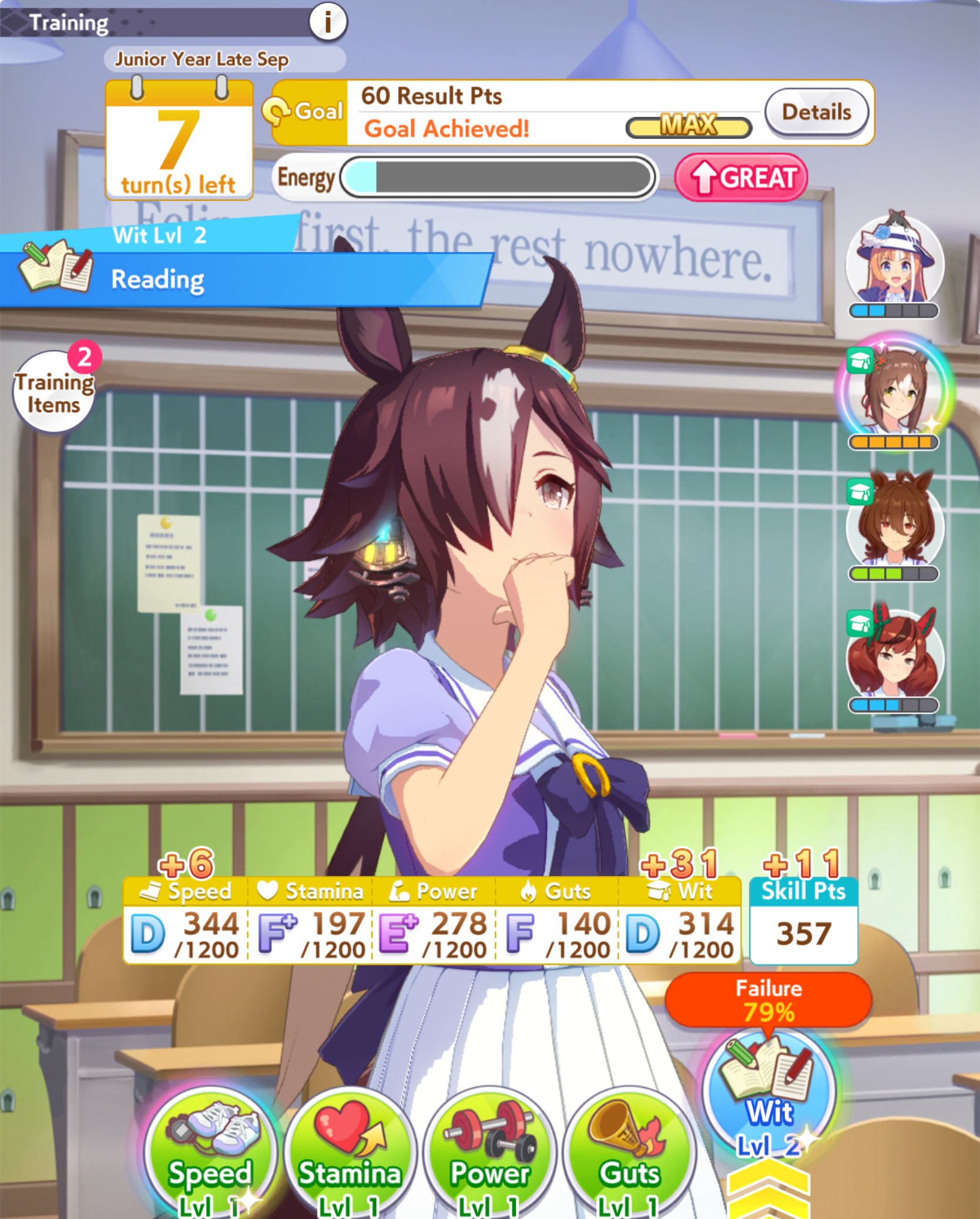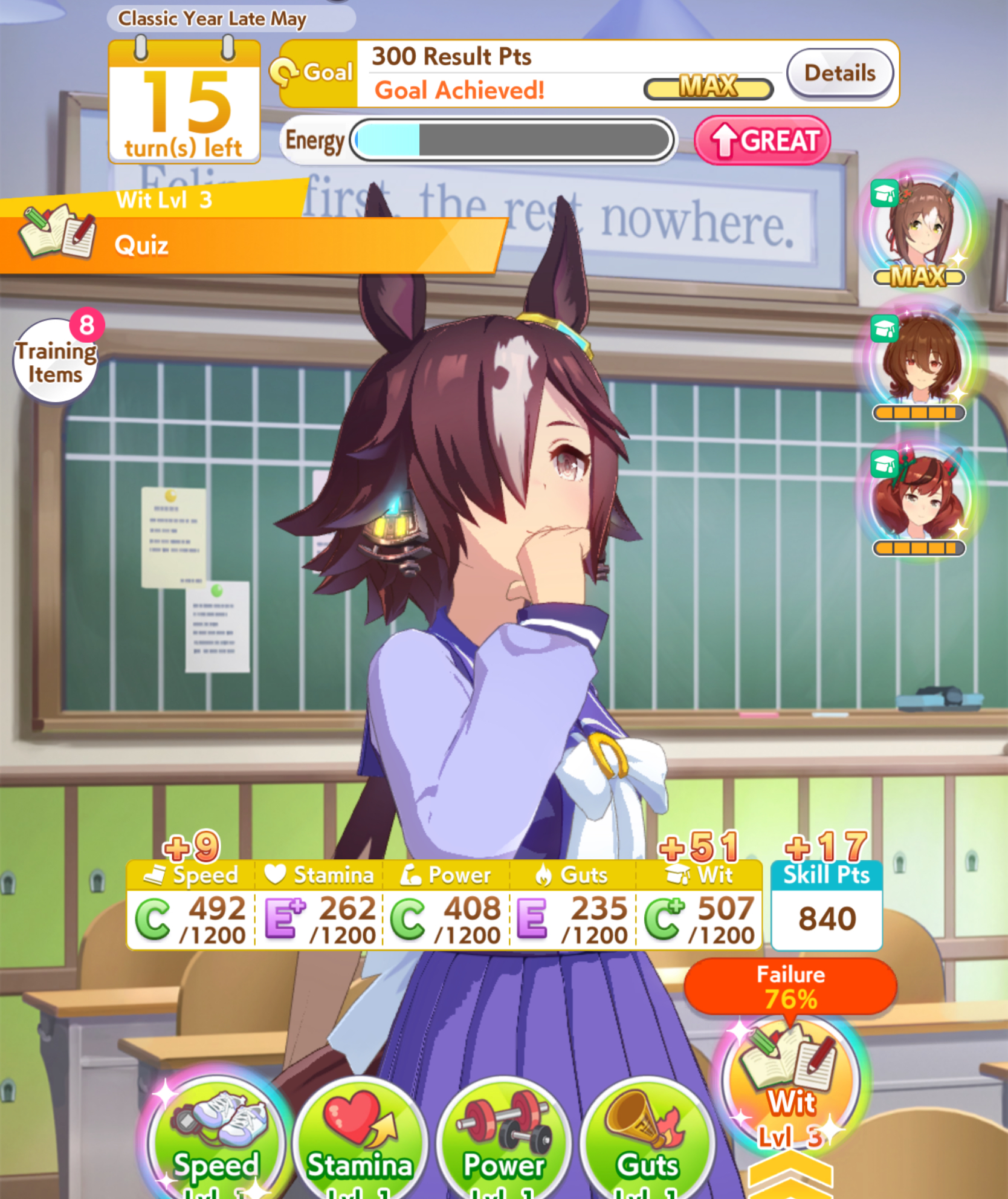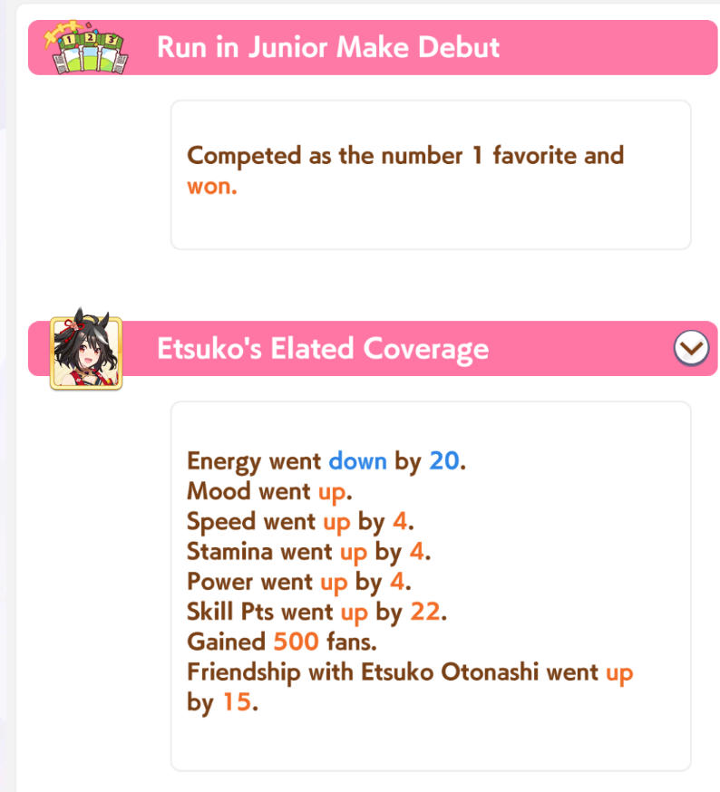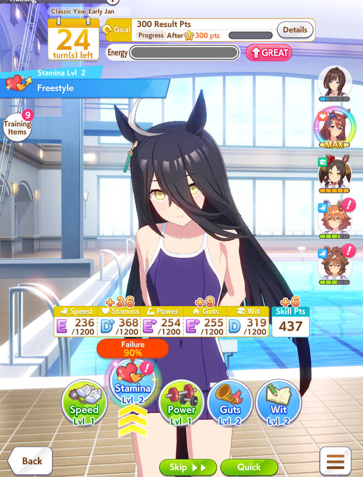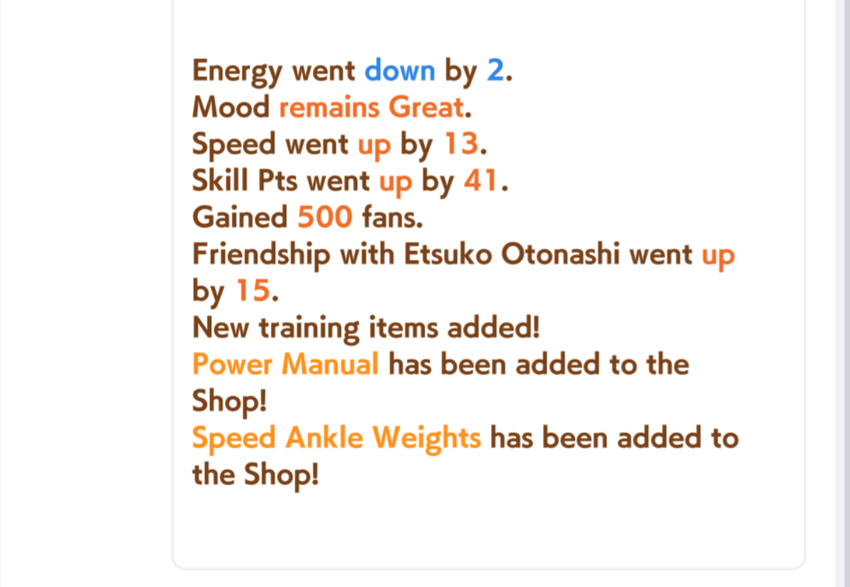 >>560884835>>560885054>15% RB>+35 stamina +35 power>you cap power with inheritance sparks and speed training as you should>you now have enough stamina to not lose races early on and play greedy