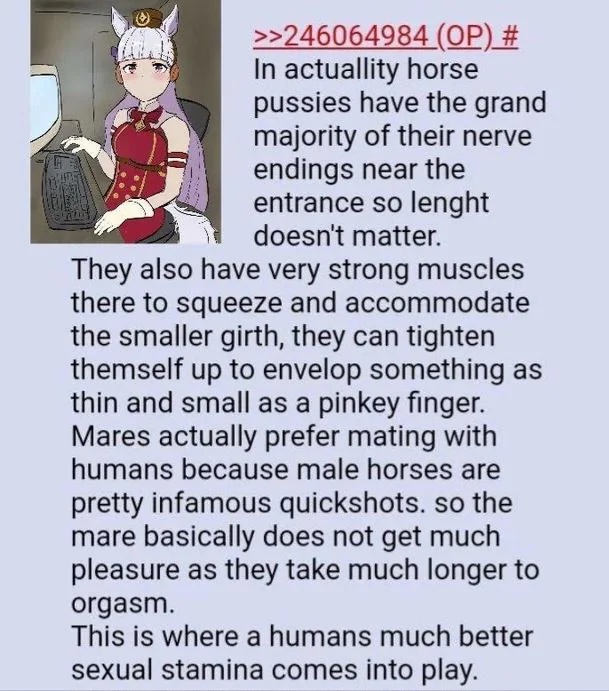 >>560882760Thank God the uma sphere is full of geezers like myself. However my 30's are a lot better than my 20's. Now I can act like a fangirl over IRL horses too without being cringe or umas as they overlap each other.>>560882681You have really large ears anon, she just doesn't want to tell you this.
